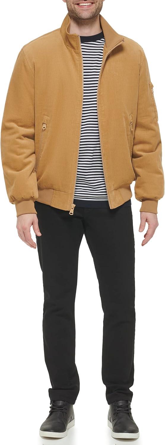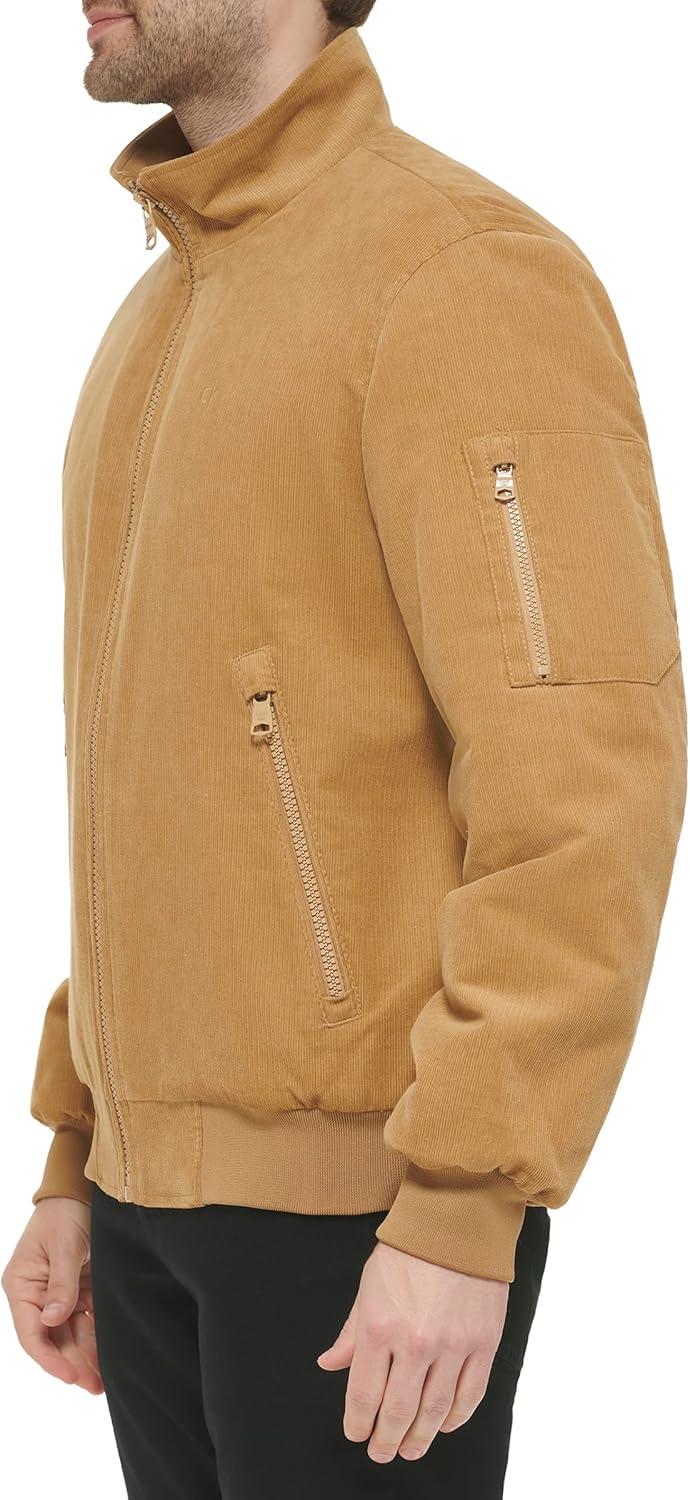 This Calvin Klein mens OUTERWEAR Bomber is a soft cold weather everyday corduroy bomber
