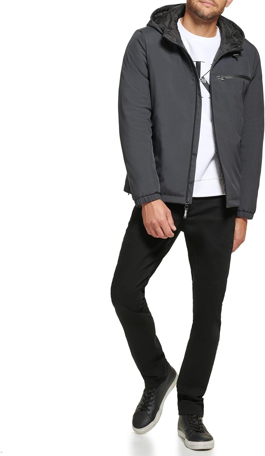 Calvin Klein Mens Hooded Windbreaker(Classic Hooded Iron)