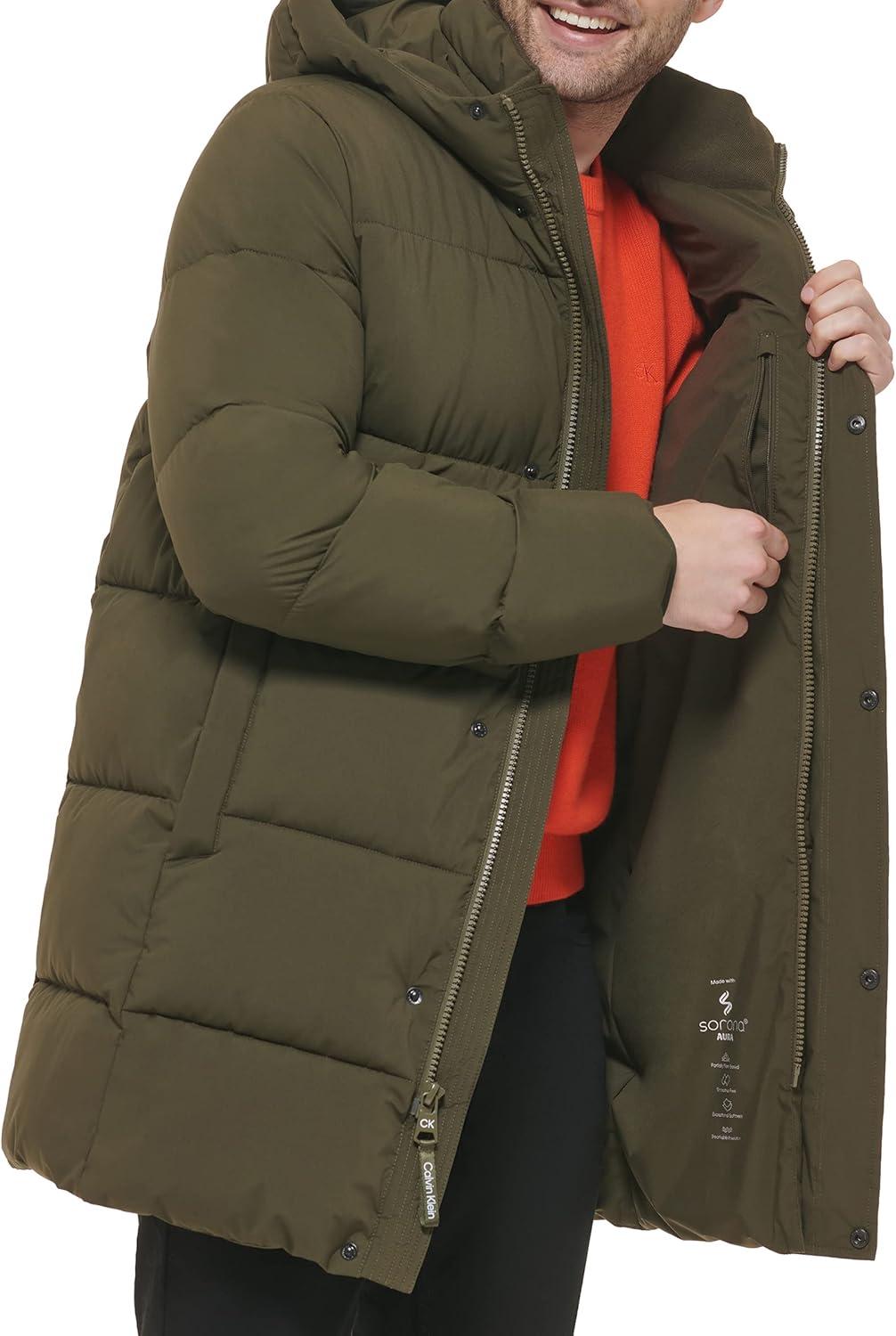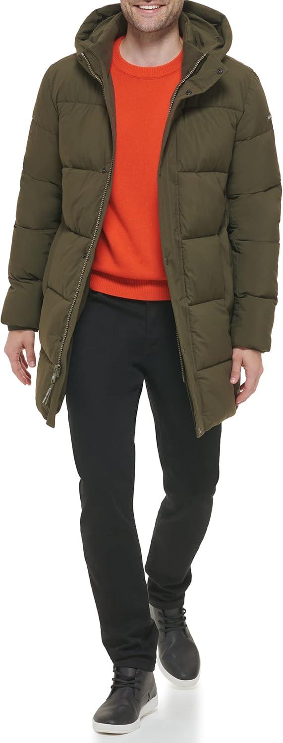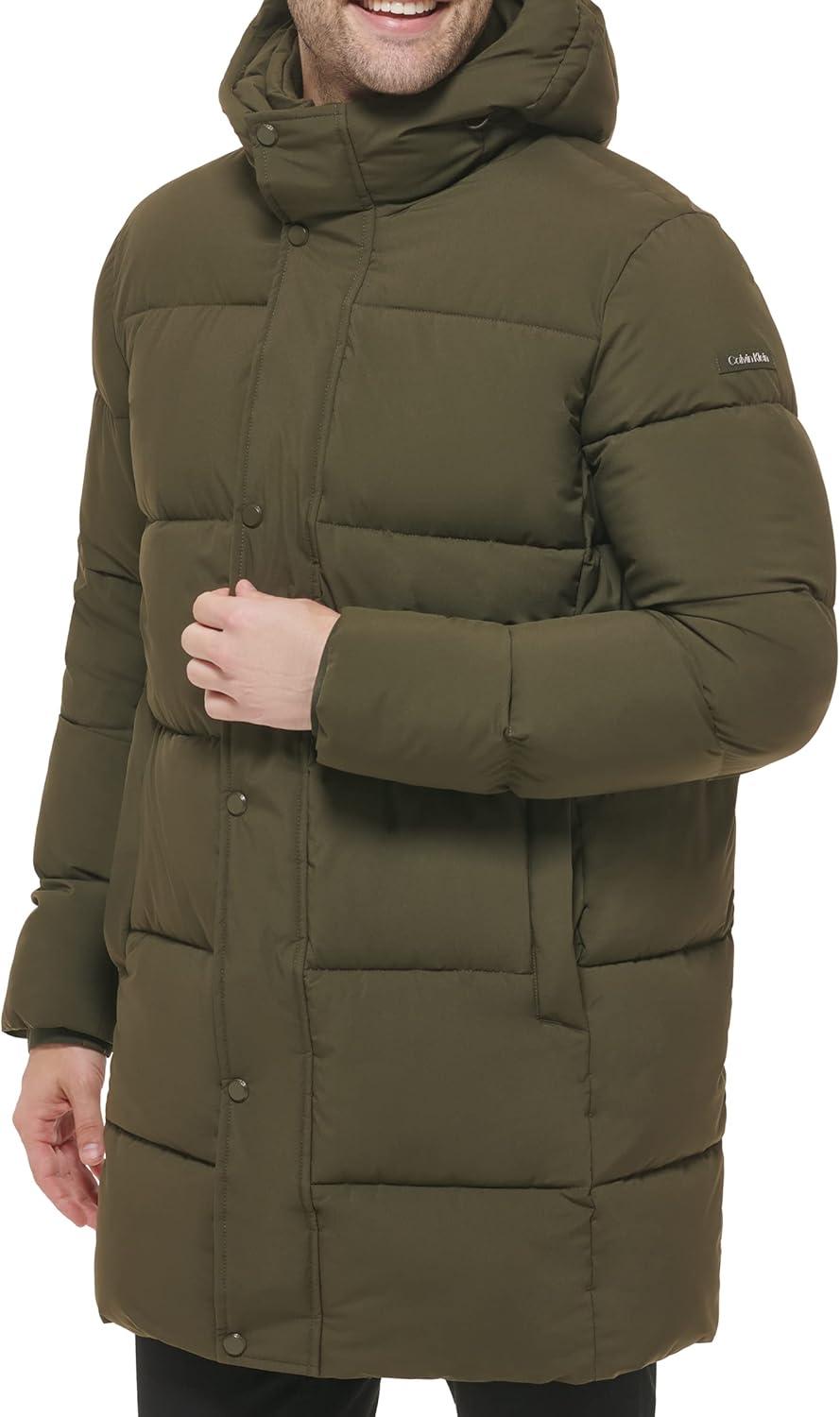 Calvin Klein Mens Modern Outdoor Stretch Puffer Jacket(Long Stretch Olive)