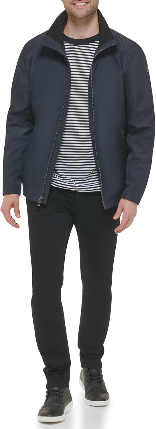 Calvin Klein mens Stand Collar Poly Jacket(Stand Collar True Navy)