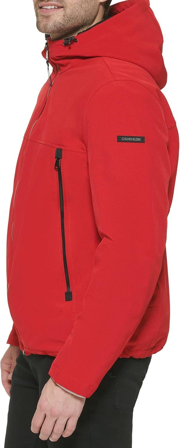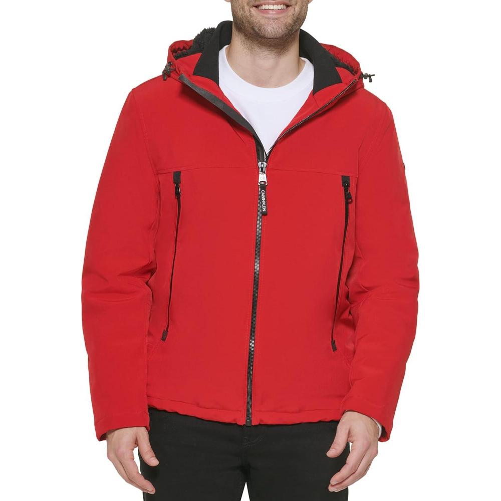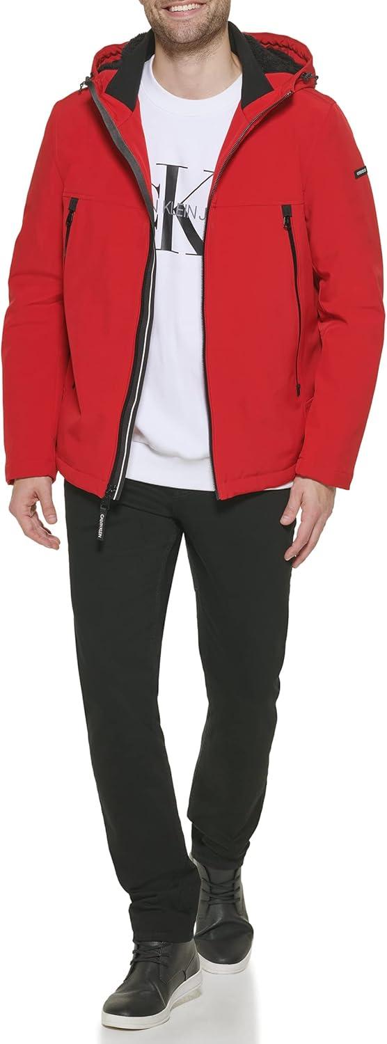 Calvin Klein Mens Winter Coats - Sherpa-lined Hooded Soft Shell Jacket(Sherpa Lined True Red)
