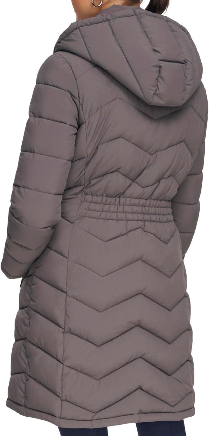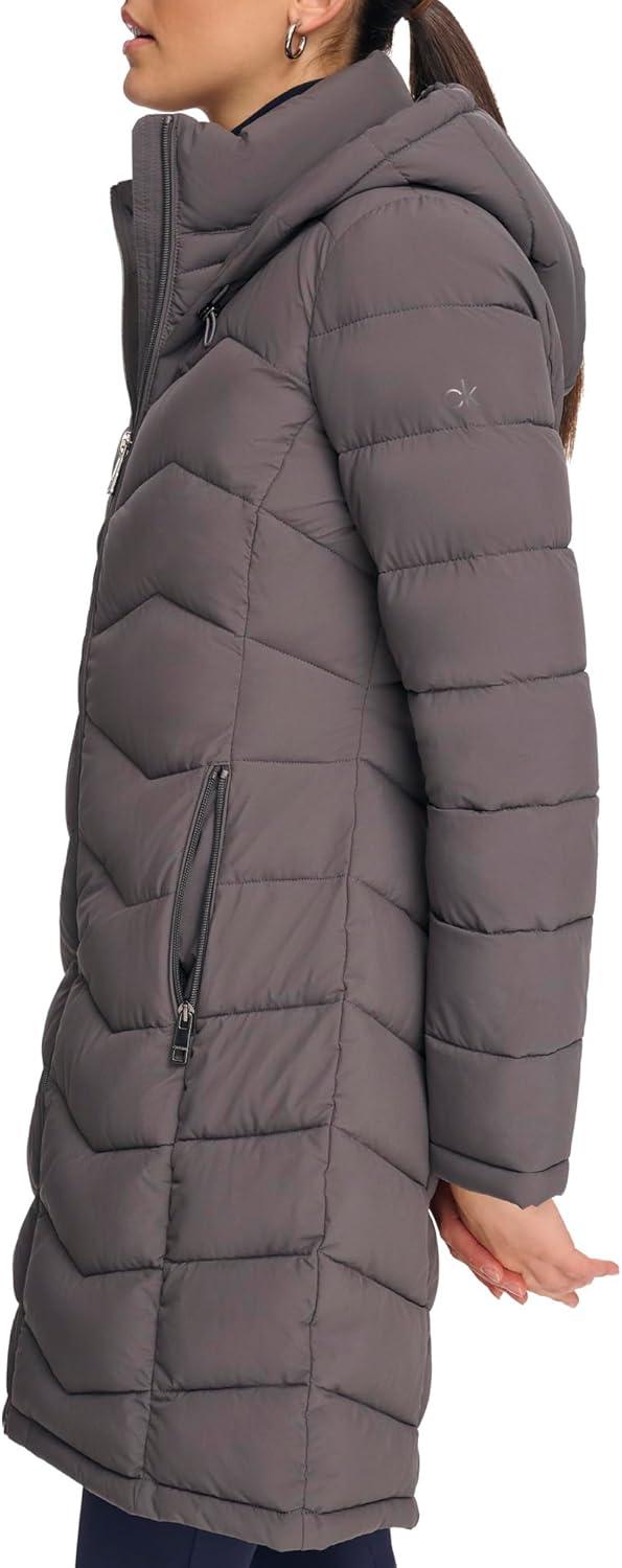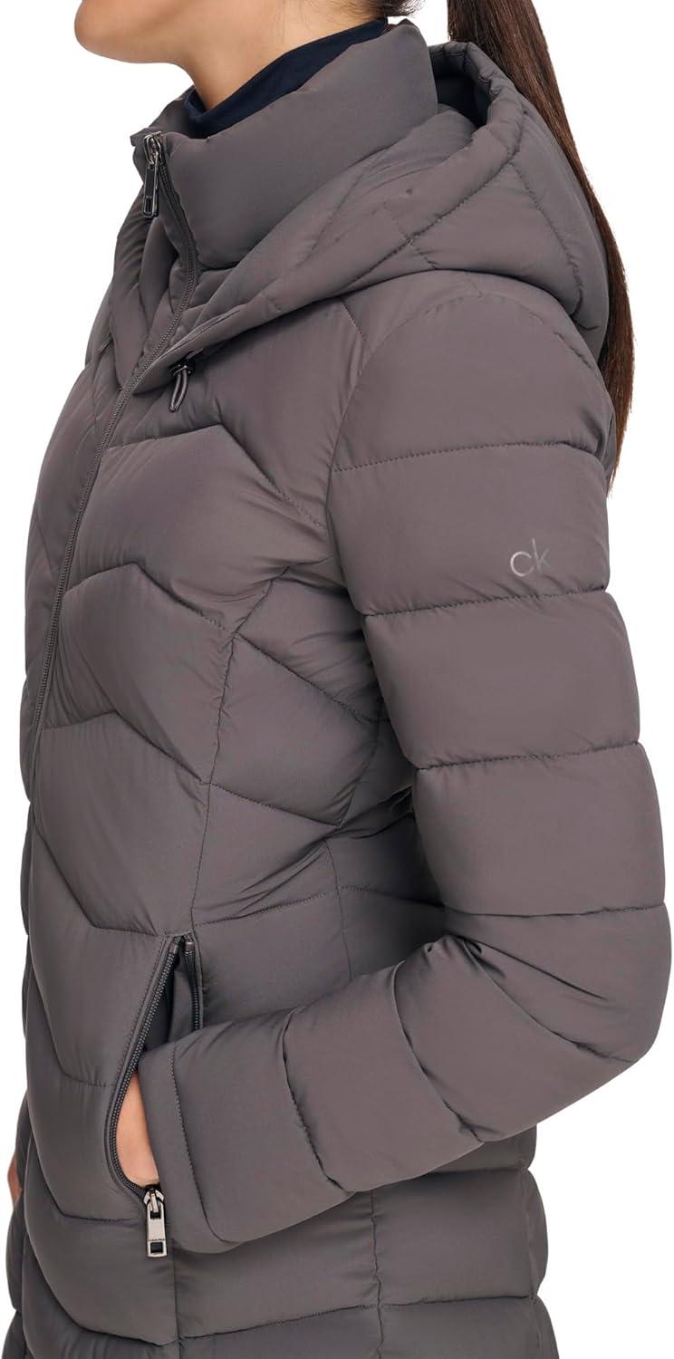 Calvin Klein Women's Chevron Quilting Casual Lightweight Jacket(Long Bib Forged Iron)