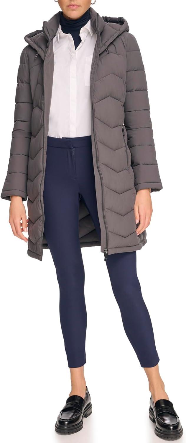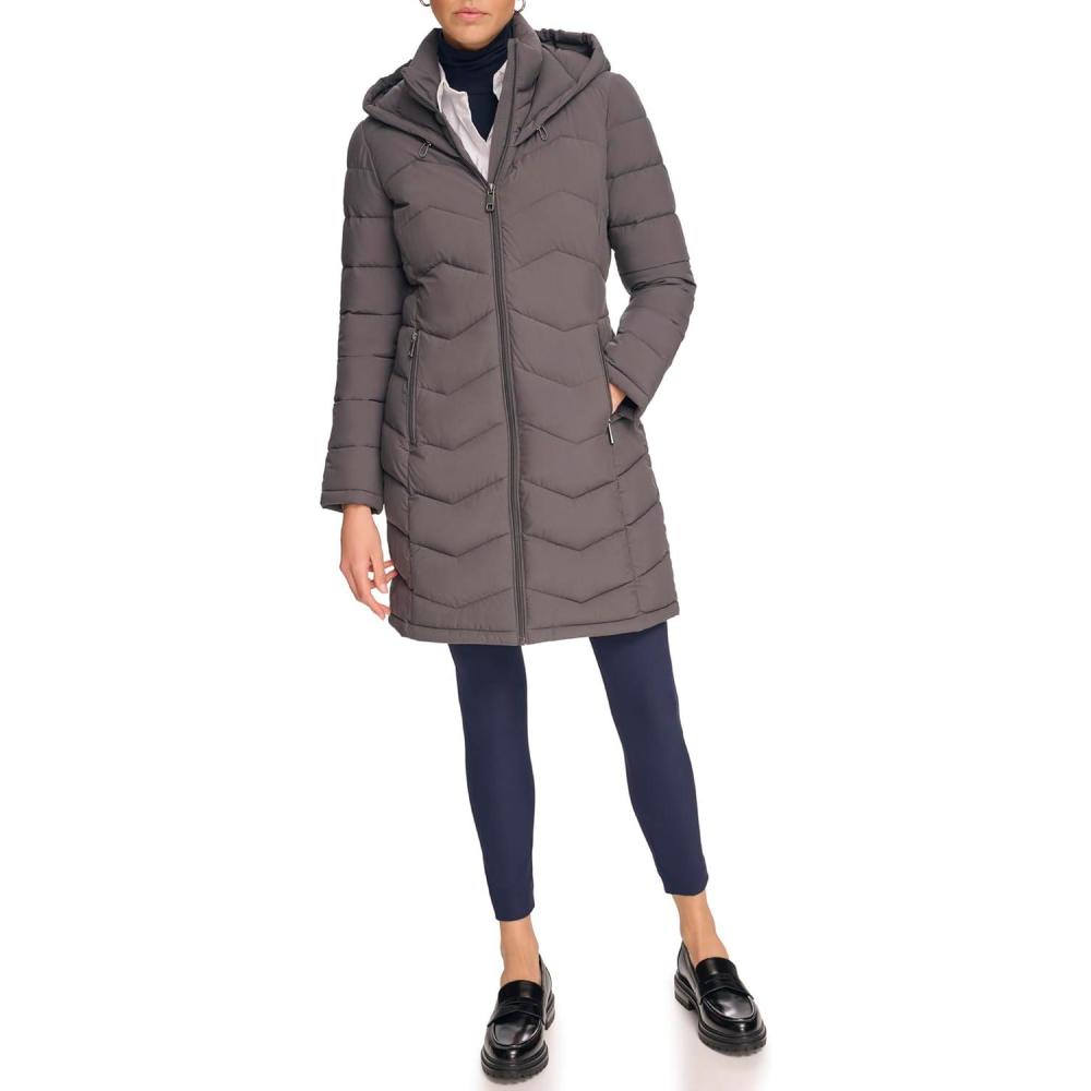 imageCalvin Klein Womens Chevron Quilting Casual Lightweight JacketLong Bib Forged Iron