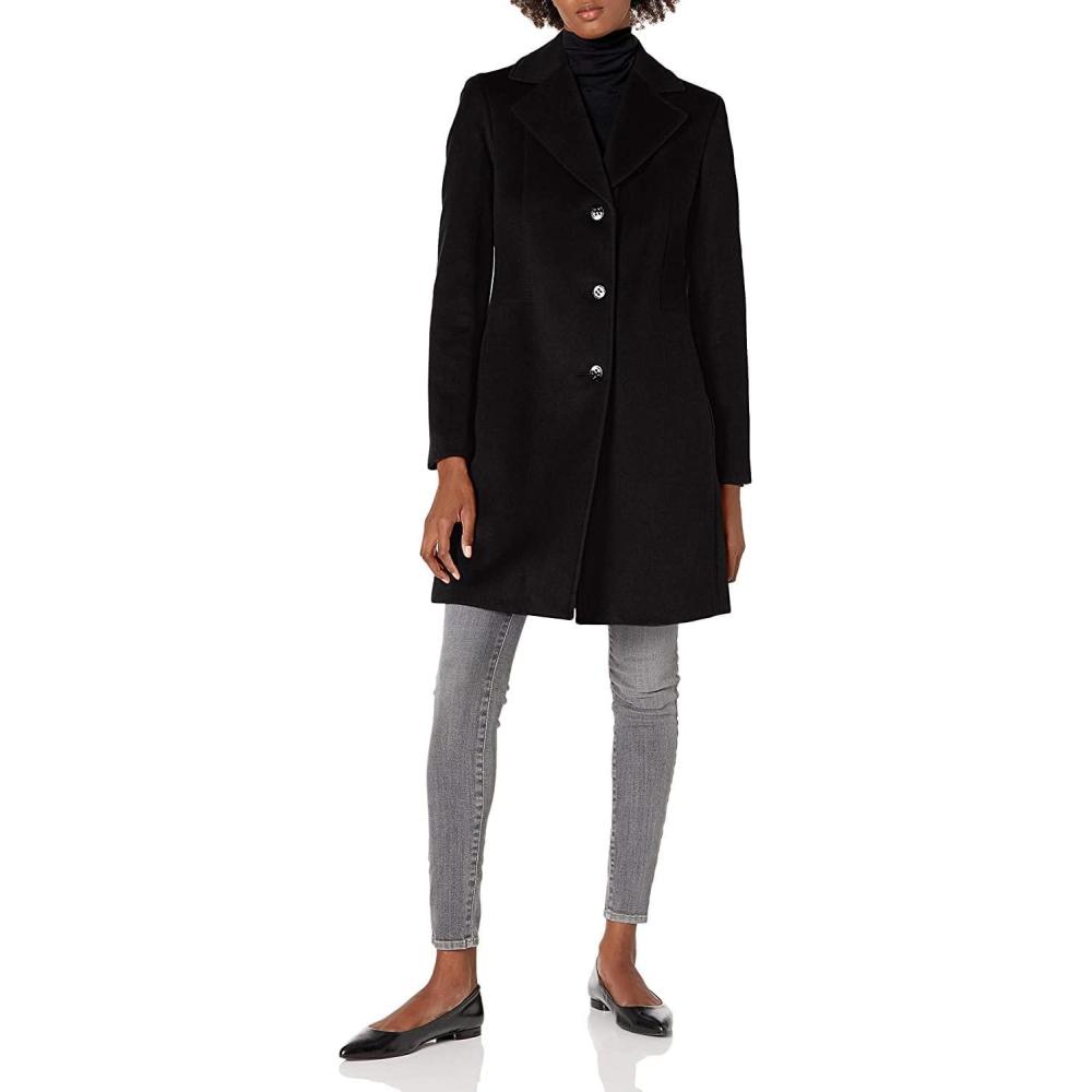 Calvin Klein Womens Classic Cashmere Wool Blend Coat(Classic Black)