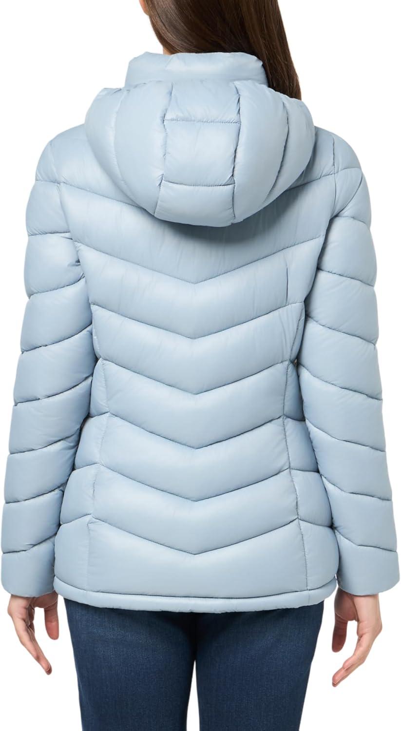 Calvin Klein Womens Classic Hooded Zip Front Puffer Coat(Chambray)