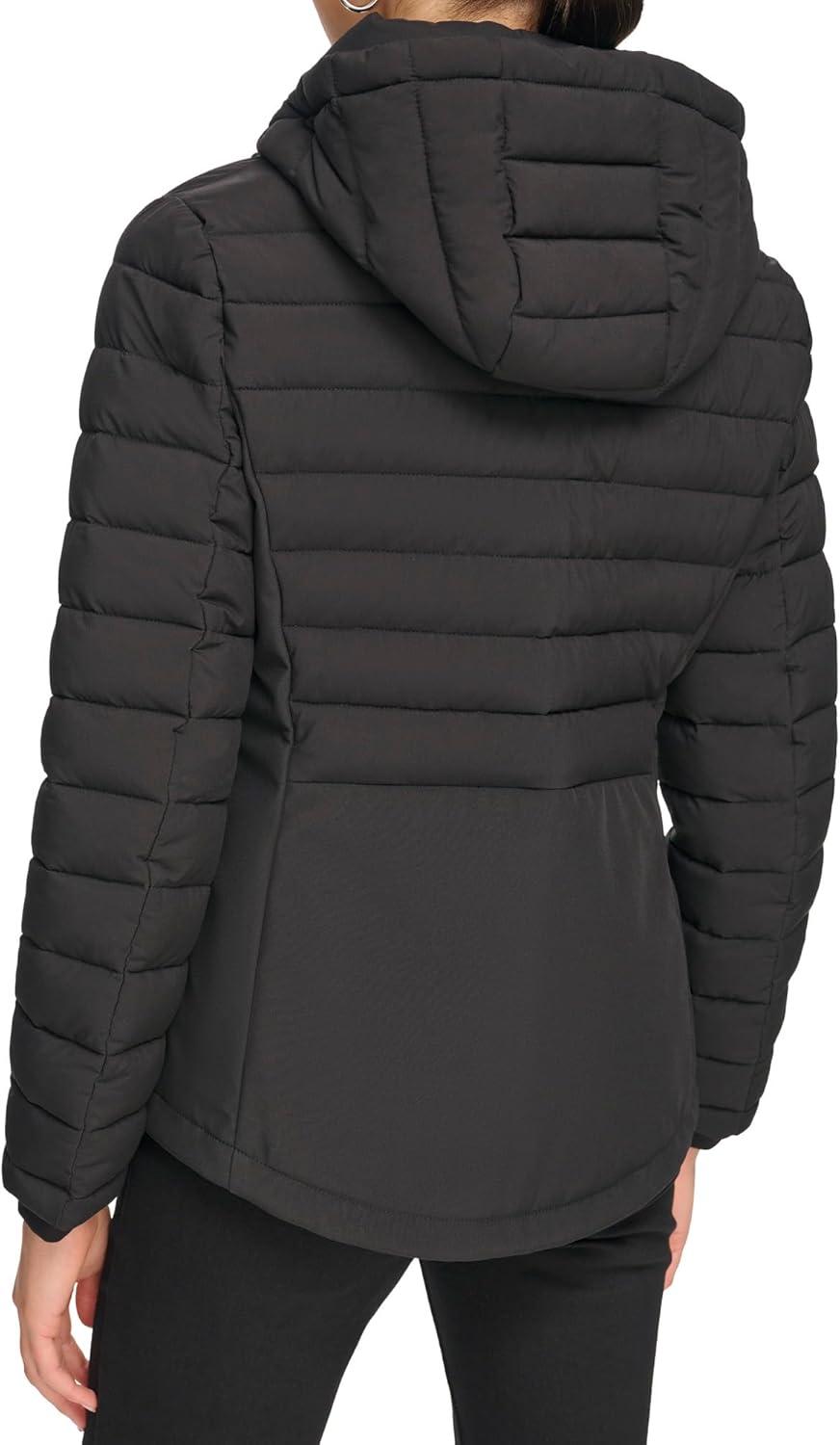 Calvin Klein Womens Classic Hooded Zip Front Puffer Coat(Light-weight Classic Black)