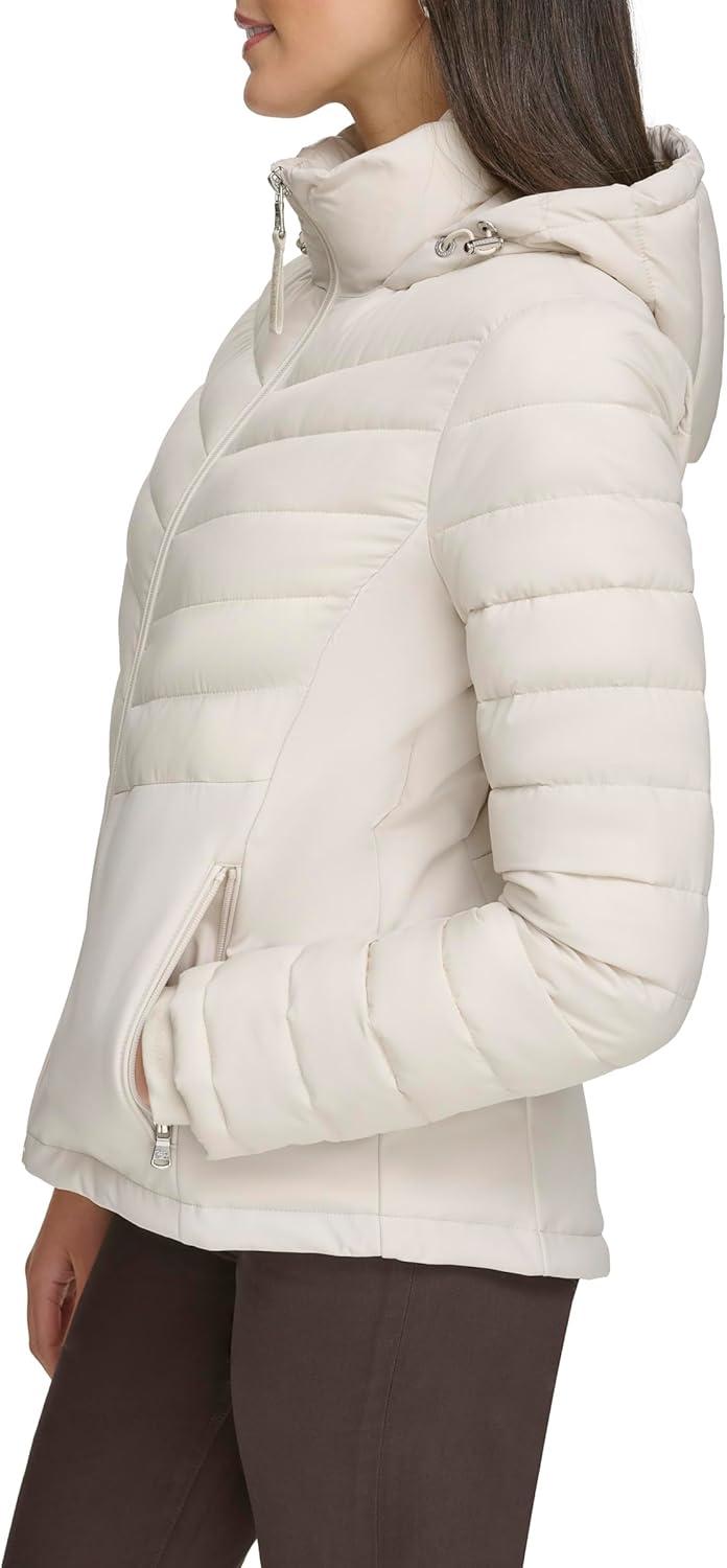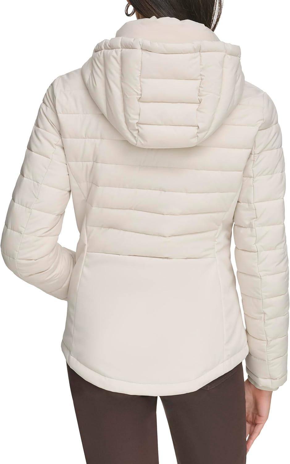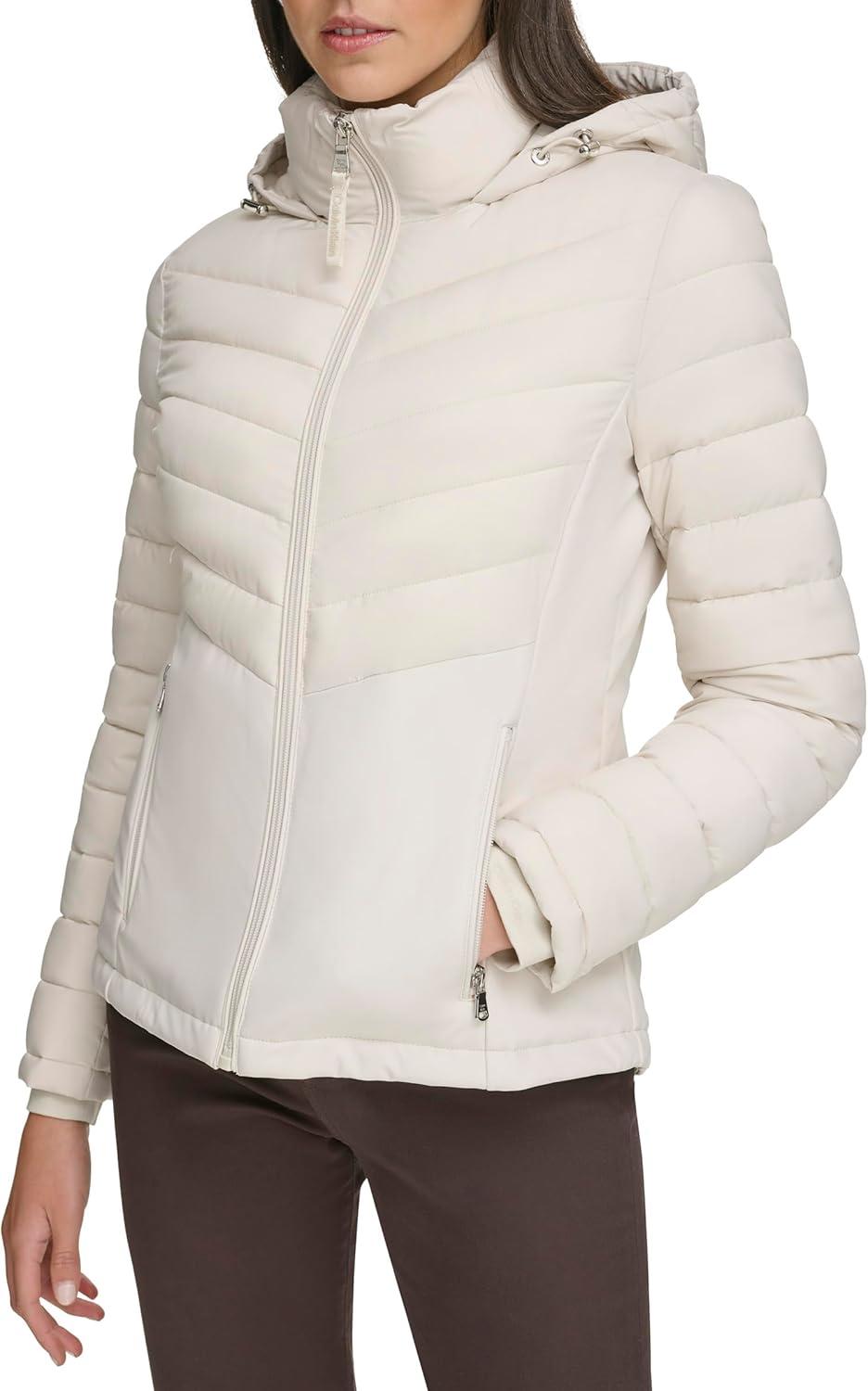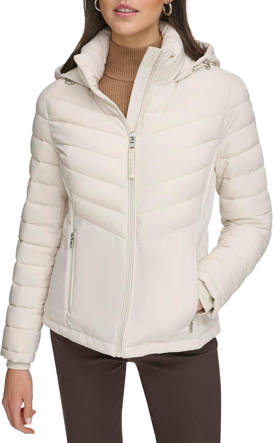 Calvin Klein Womens Classic Hooded Zip Front Puffer Coat(Warm Cream)