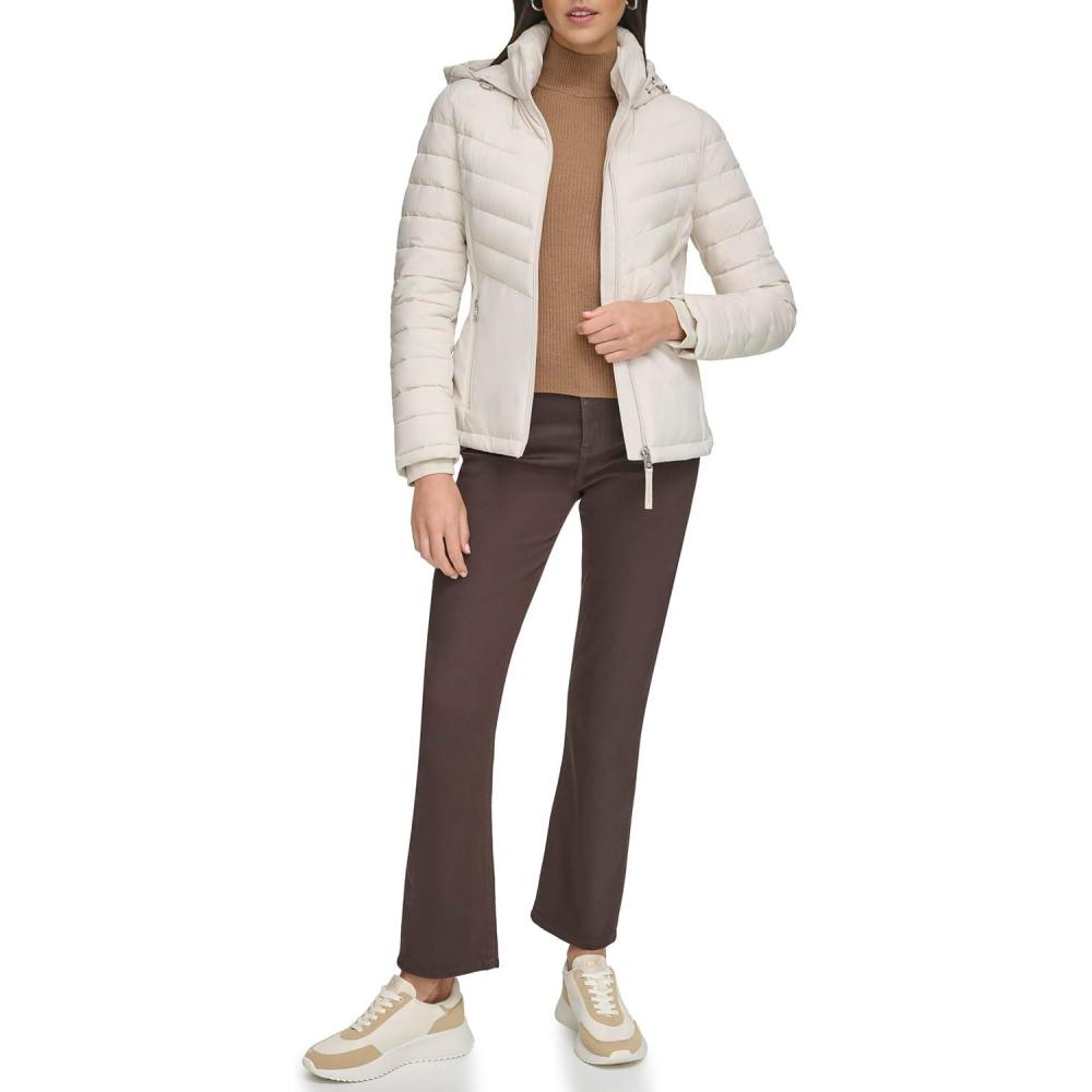 imageCalvin Klein Womens Classic Hooded Zip Front Puffer CoatWarm Cream