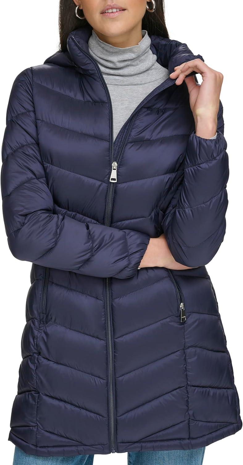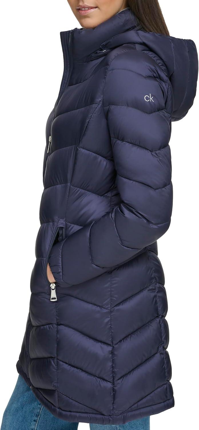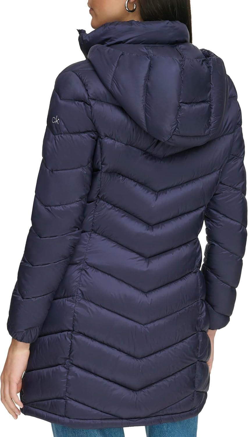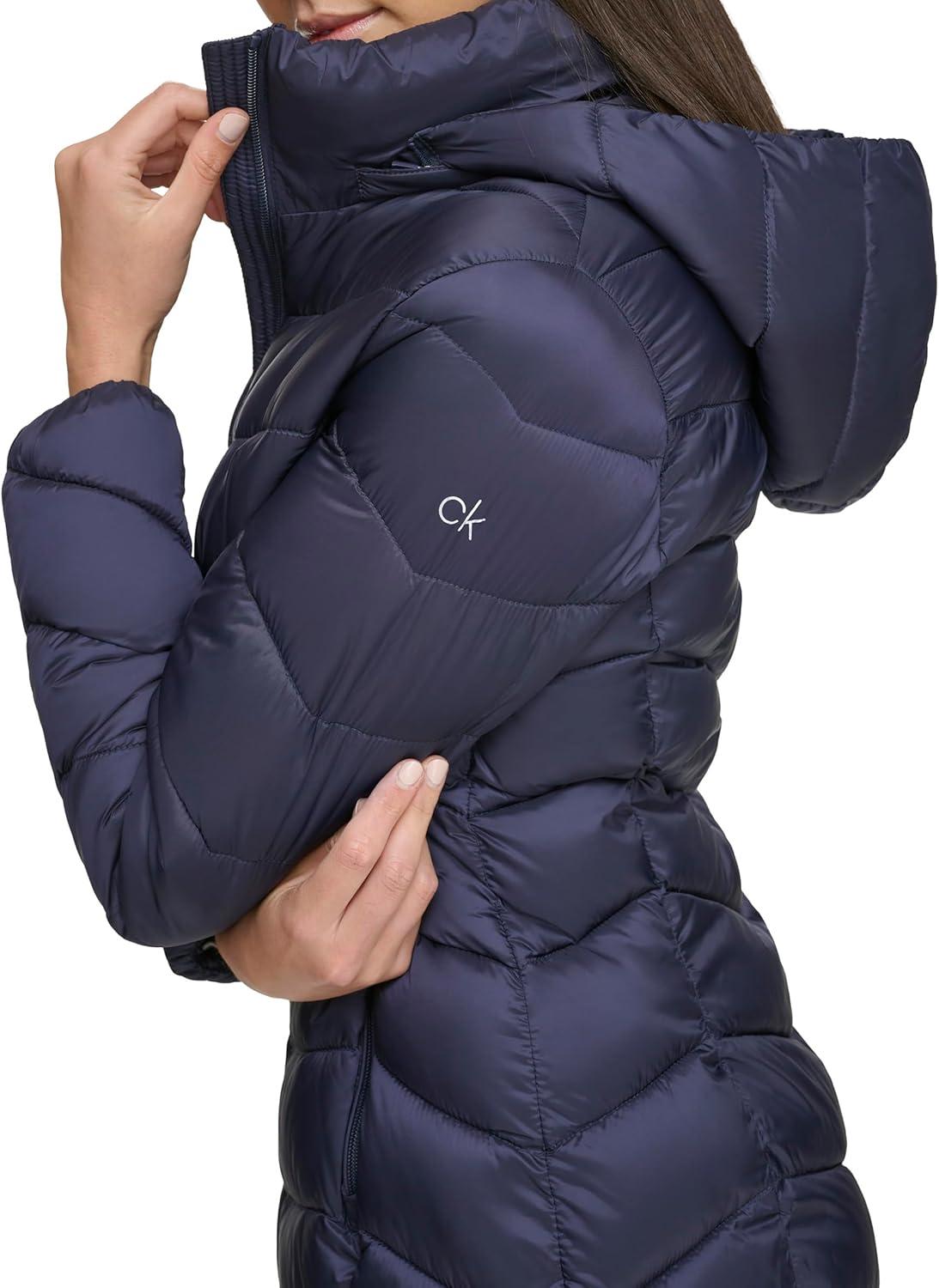Calvin Klein Women’s Long Chevron Puffer Jacket(Dark Navy)