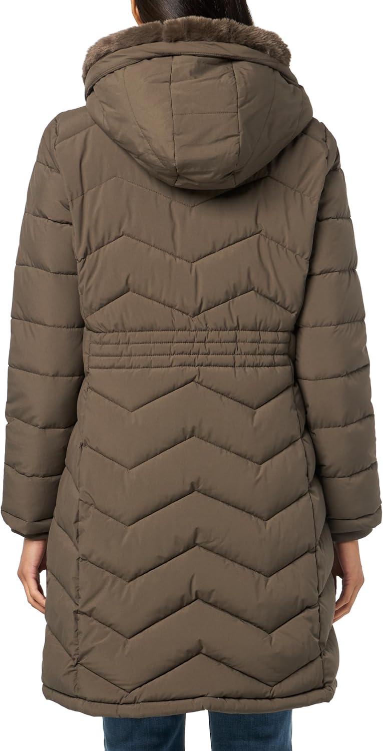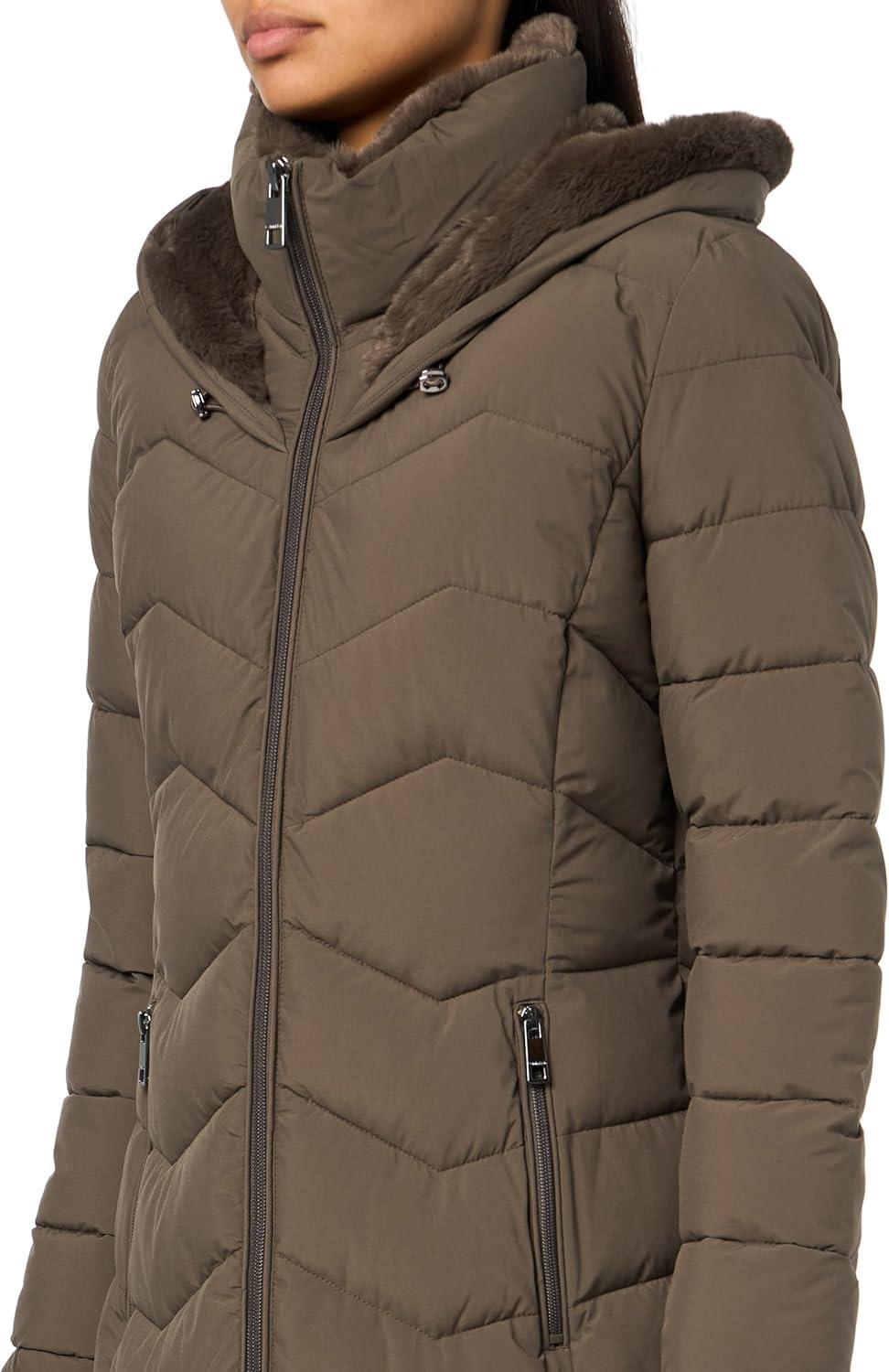 Calvin Klein Women’s Long Chevron Puffer Jacket(Twig)
