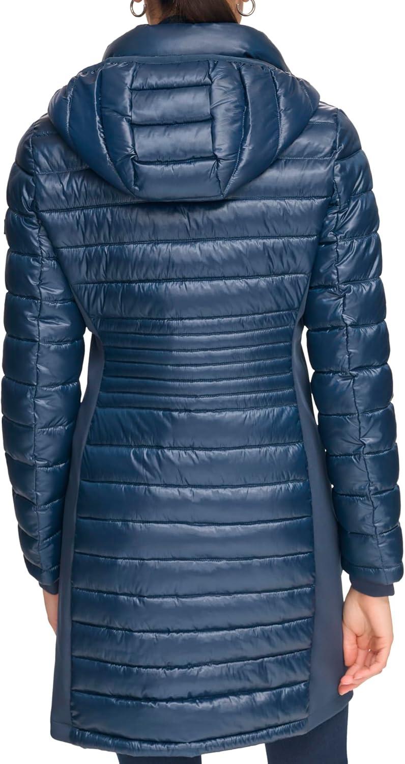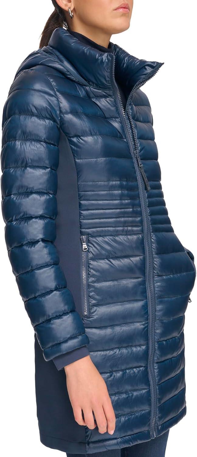 Calvin Klein Womens Long Light-weight Puffer Jacket(Light-weight Shine Slate Blue)