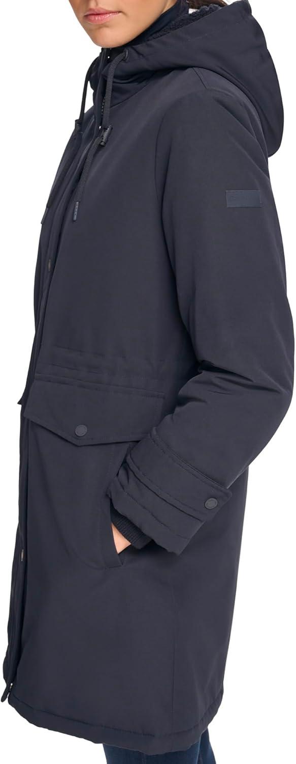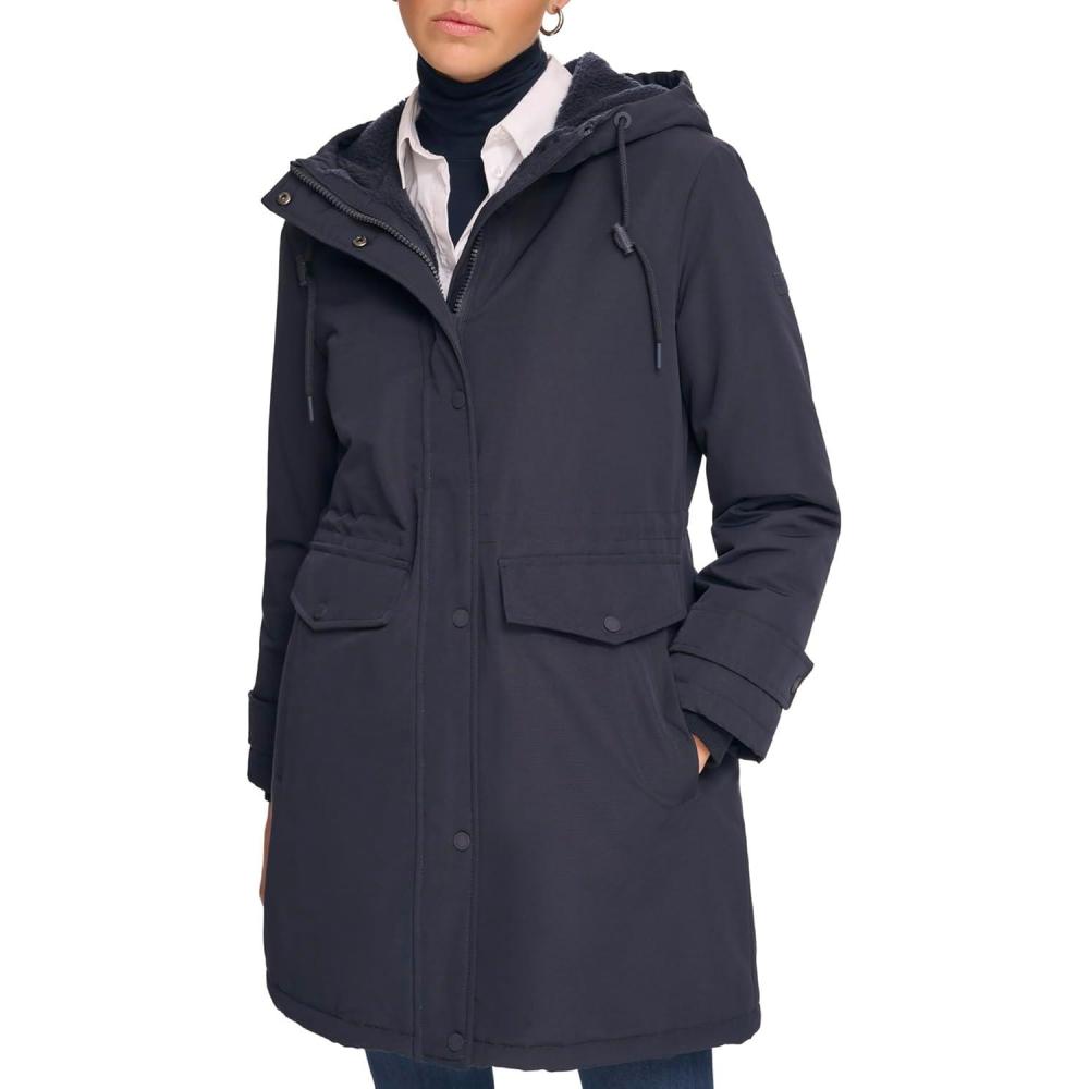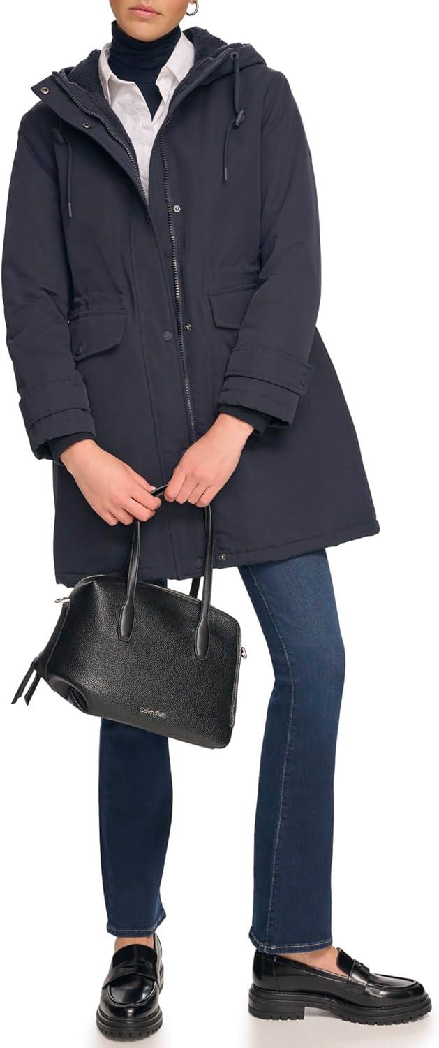 Calvin Klein womens Zipper Hooded Puffer Coat(Transitional Navy)