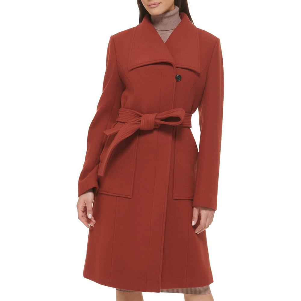 Cole Haan Women’s Belted Coat Wool with Cuff Details(Rust)