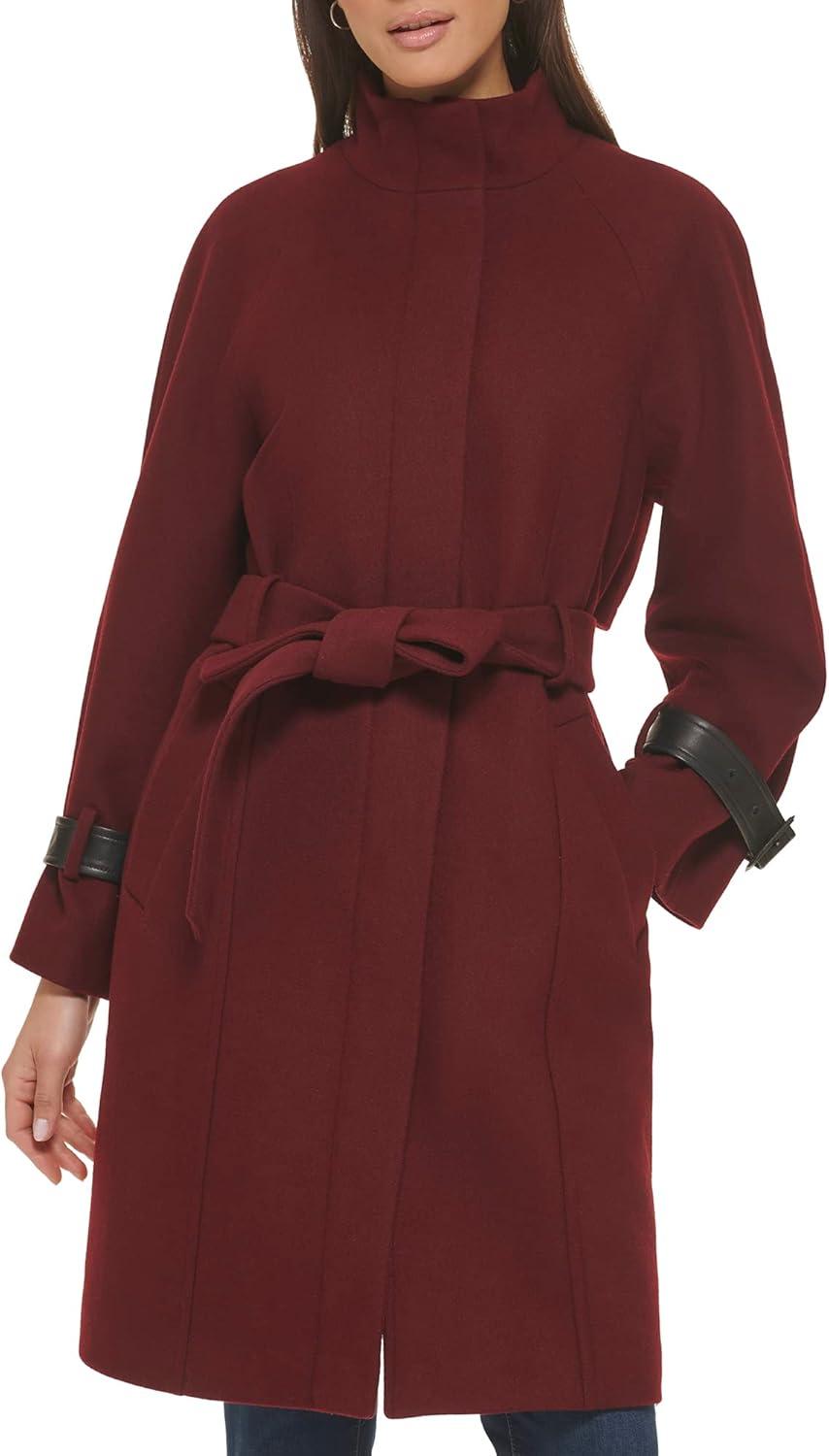 This Cole Haan Women's Outerwear Coats/Jackets is a melton wool belted raglan coat