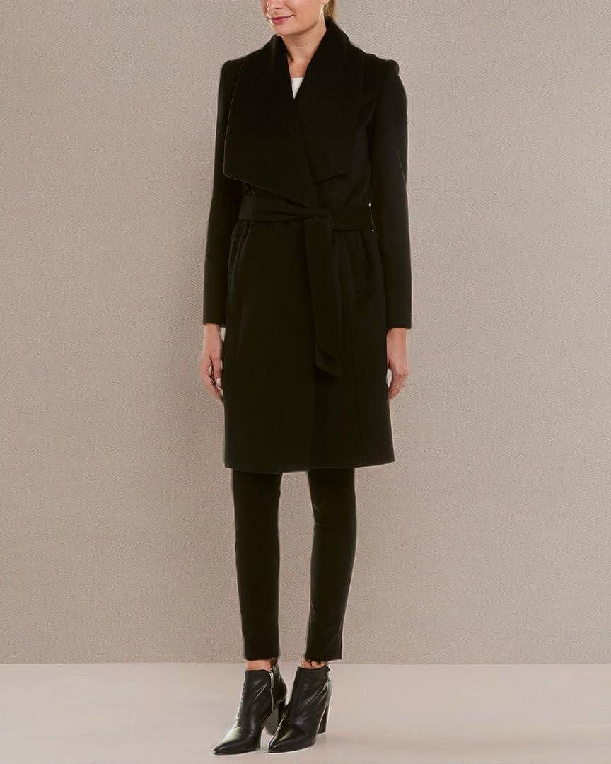 Cole Haan Women’s Belted Wool Classically Elegant Coat for Year-Round Style (Standard and Plus Size)(Elegant Black)