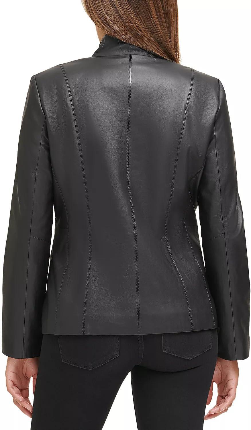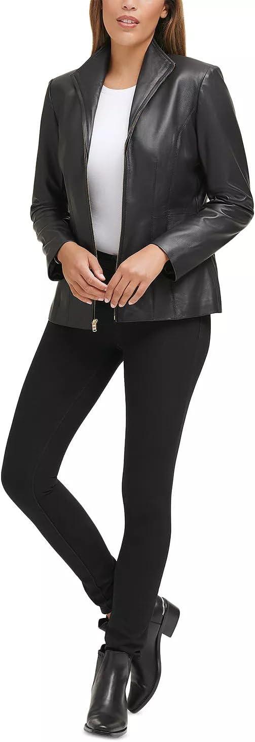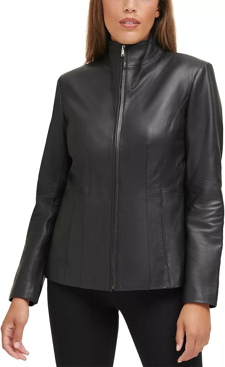 Get your hands on our newest Cole Haan Women’s Leather Wing Collared Jacket (Standard and Plus Size)(True Black) and enjoy a limited-time discount offer.