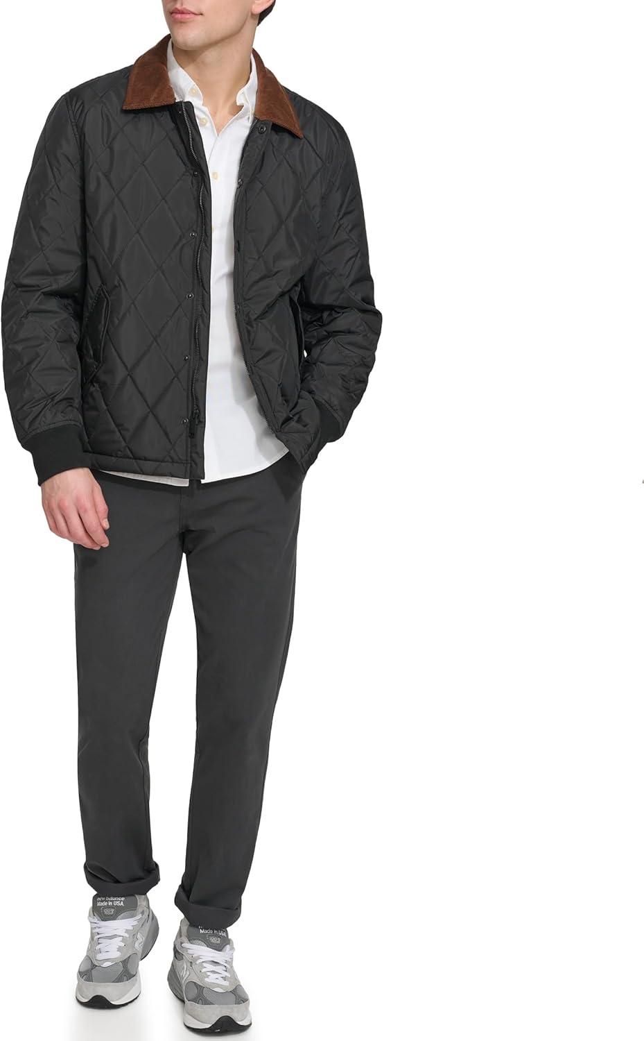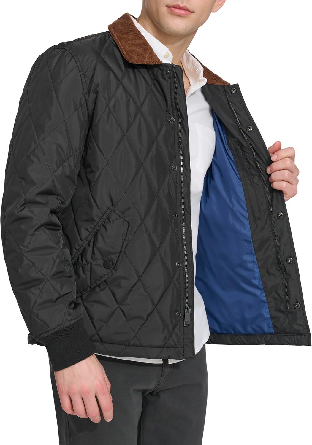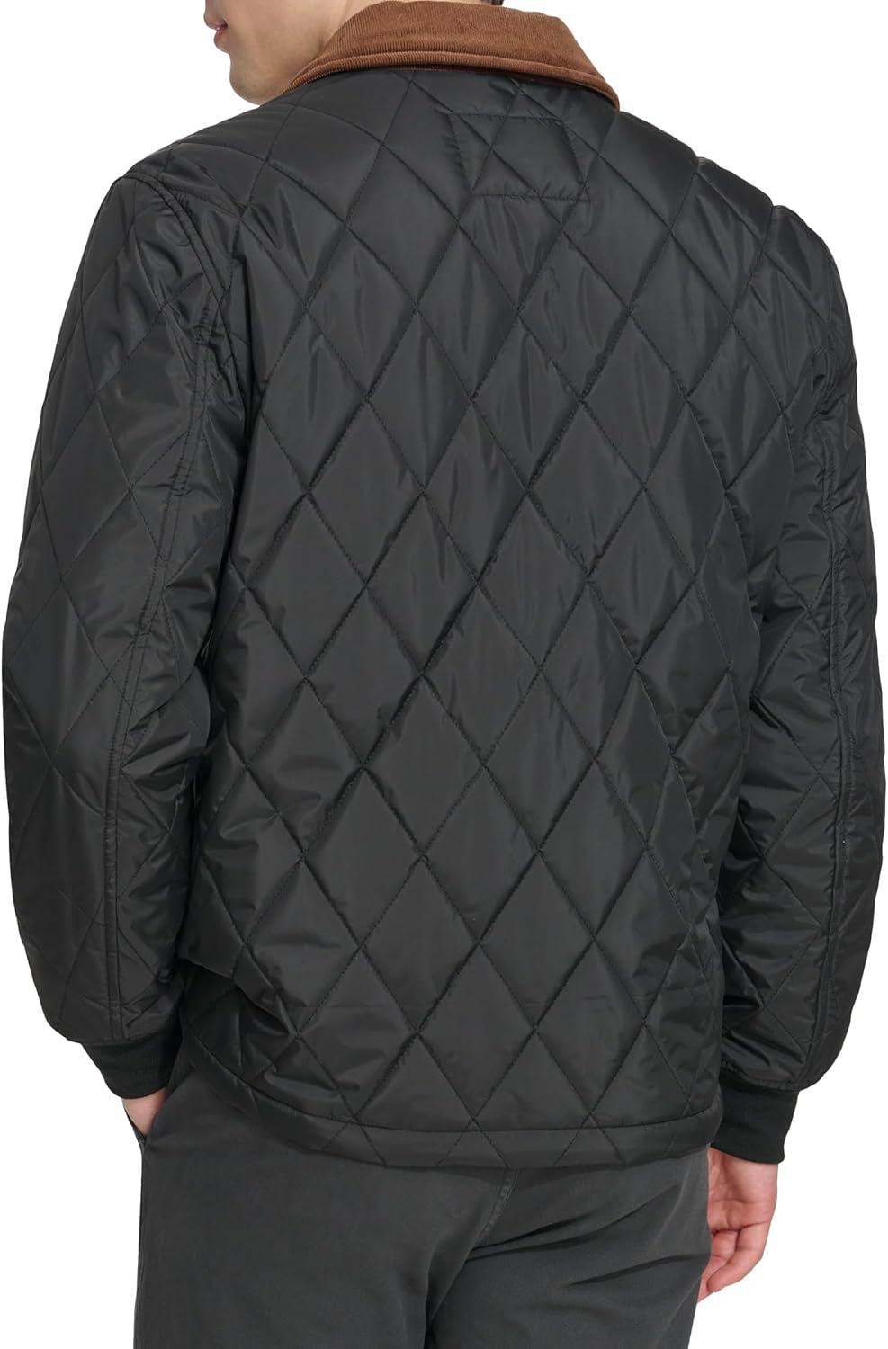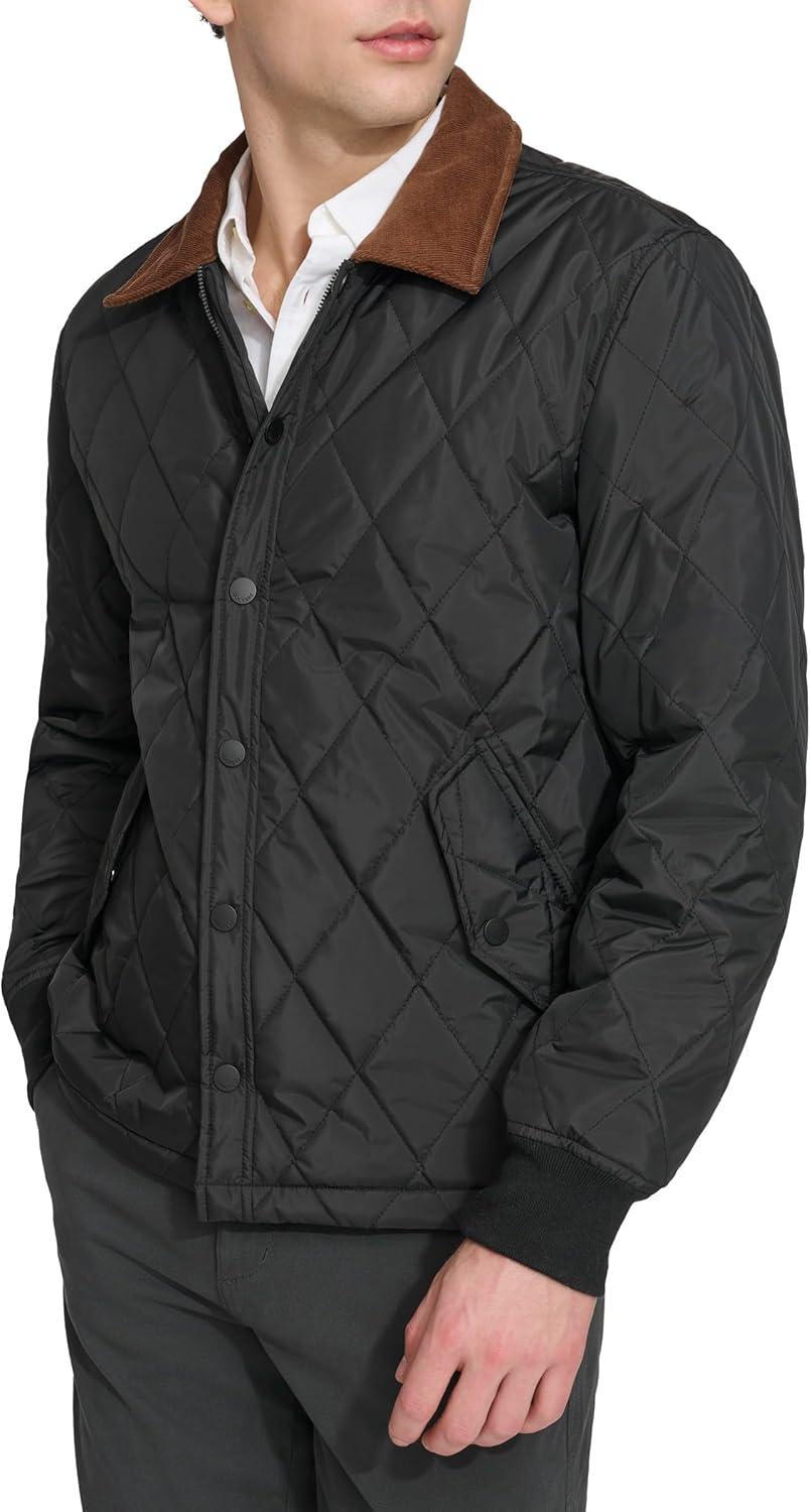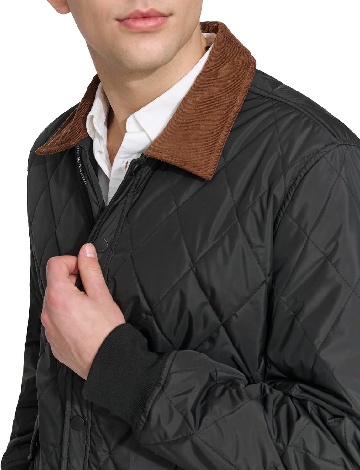 DOCKERS mens Diamond Quilted Jacket With Corduroy Collar(Black)