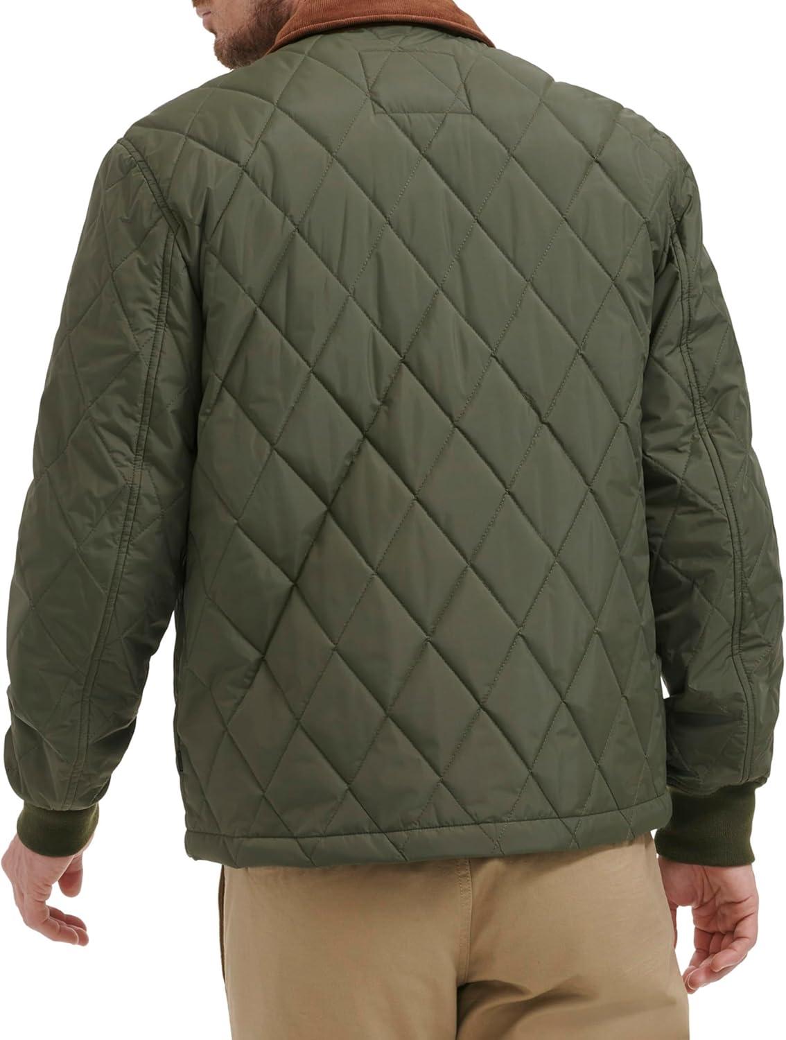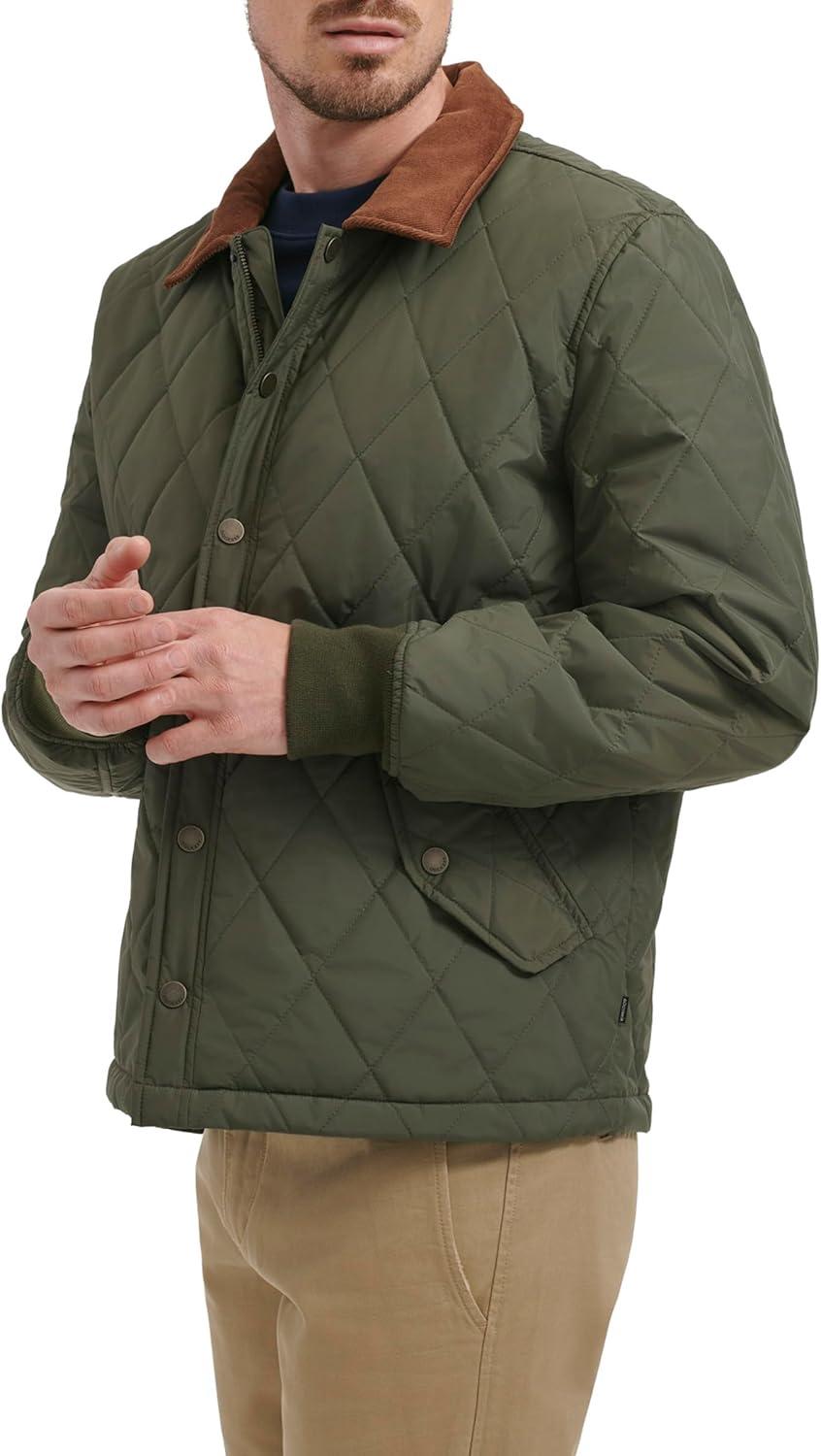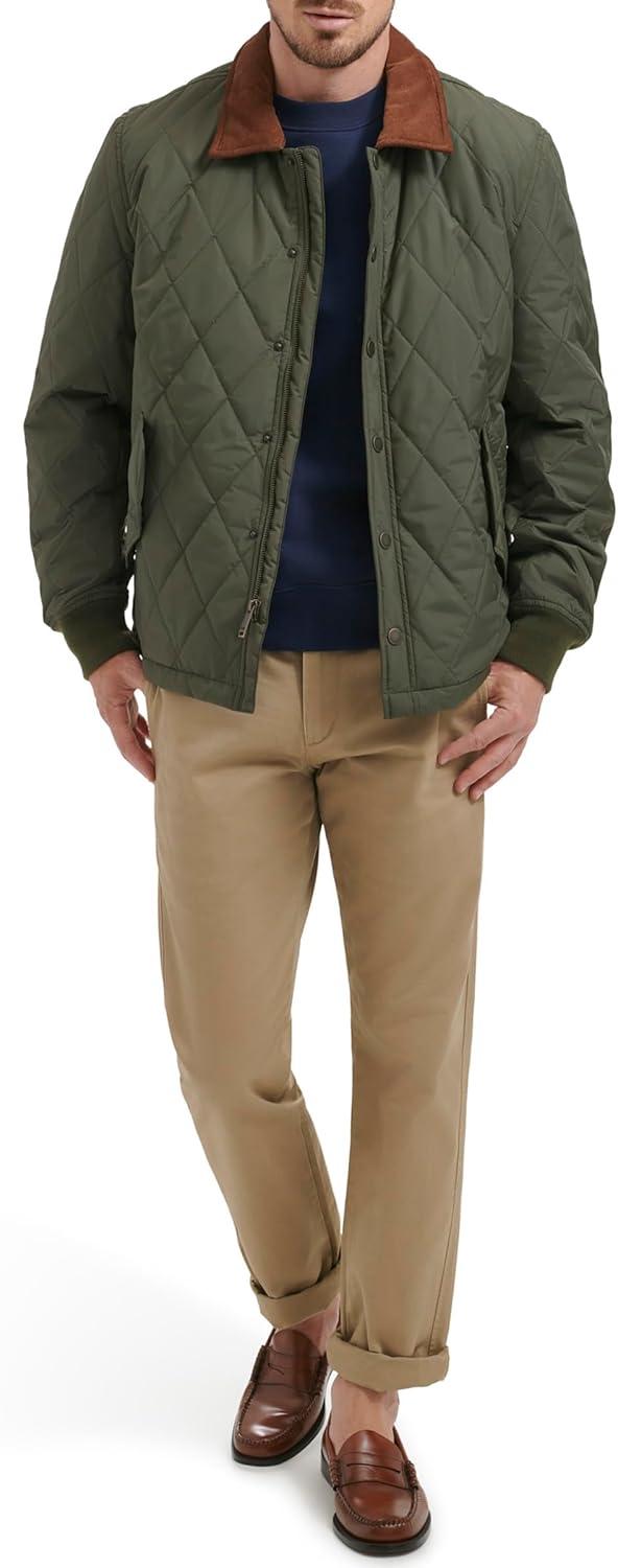 Diamond Quilted Design: Stylish diamond quilting adds texture while providing extra warmth and insulation. Laydown Corduroy Collar: A soft corduroy collar enhances comfort and adds a classic, sophisticated touch. Two Lower Snap Pockets: Practical snap pockets offer secure storage for essentials while maintaining a sleek look. Rib Knit Cuffs: Ribbed cuffs ensure a snug fit and help retain warmth during colder weather. Dual Closure: A functional zipper closure with a snap placket for added wind protection and a polished finish.