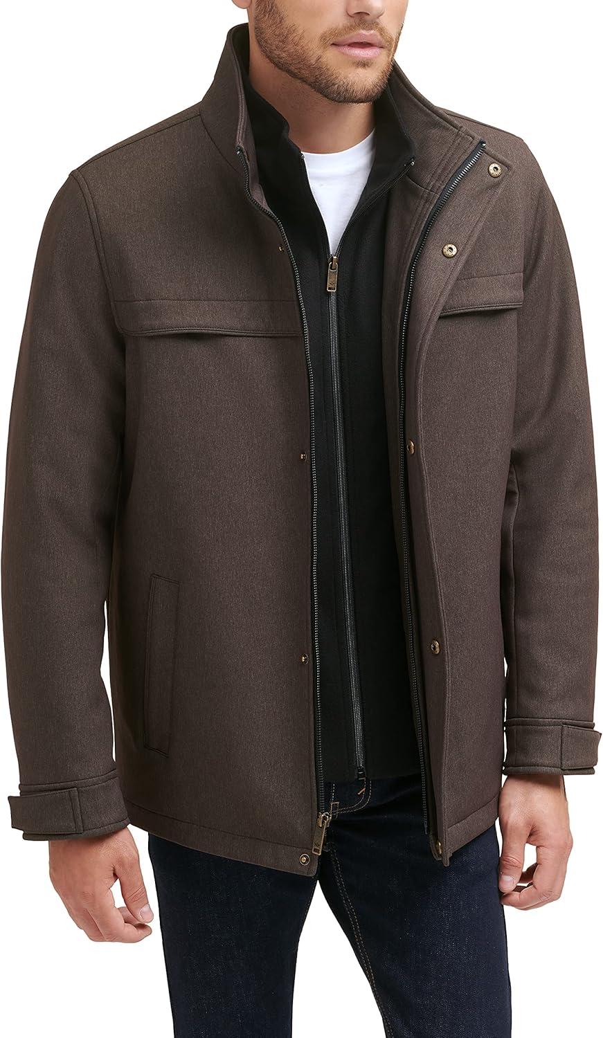 Dockers mens Dwight Soft Shell Bib Jacket(Heather Brown)