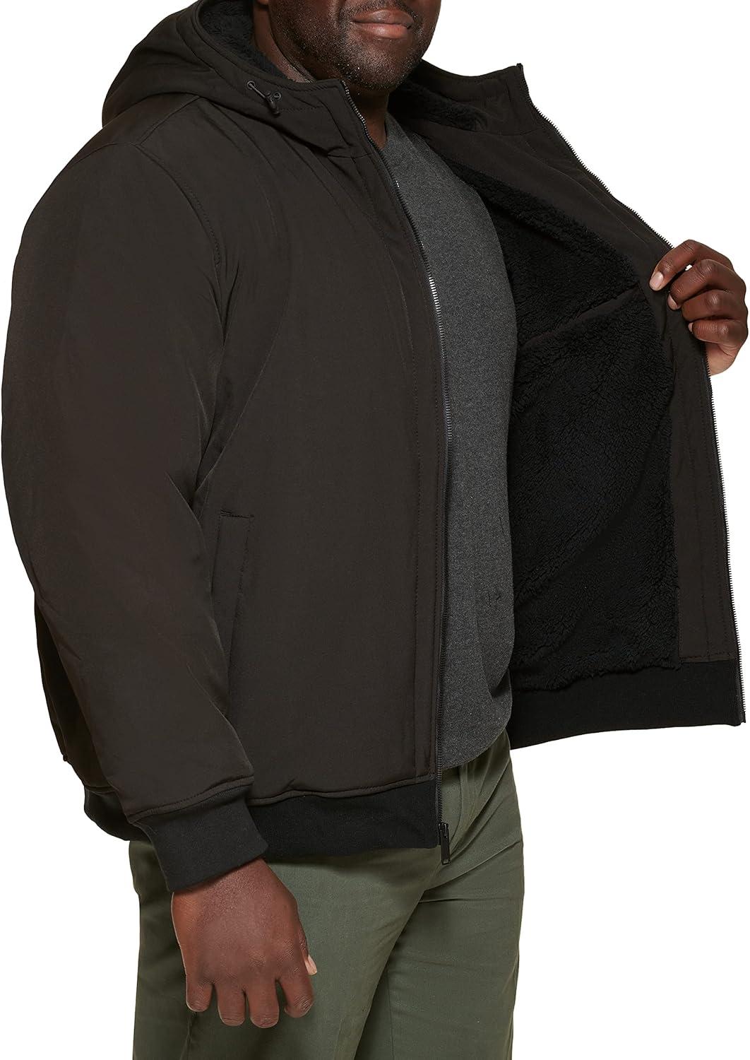 DOCKERS mens Softshell Sherpa Lined Bomber Jacket (Standard and Big & Tall)(Black)