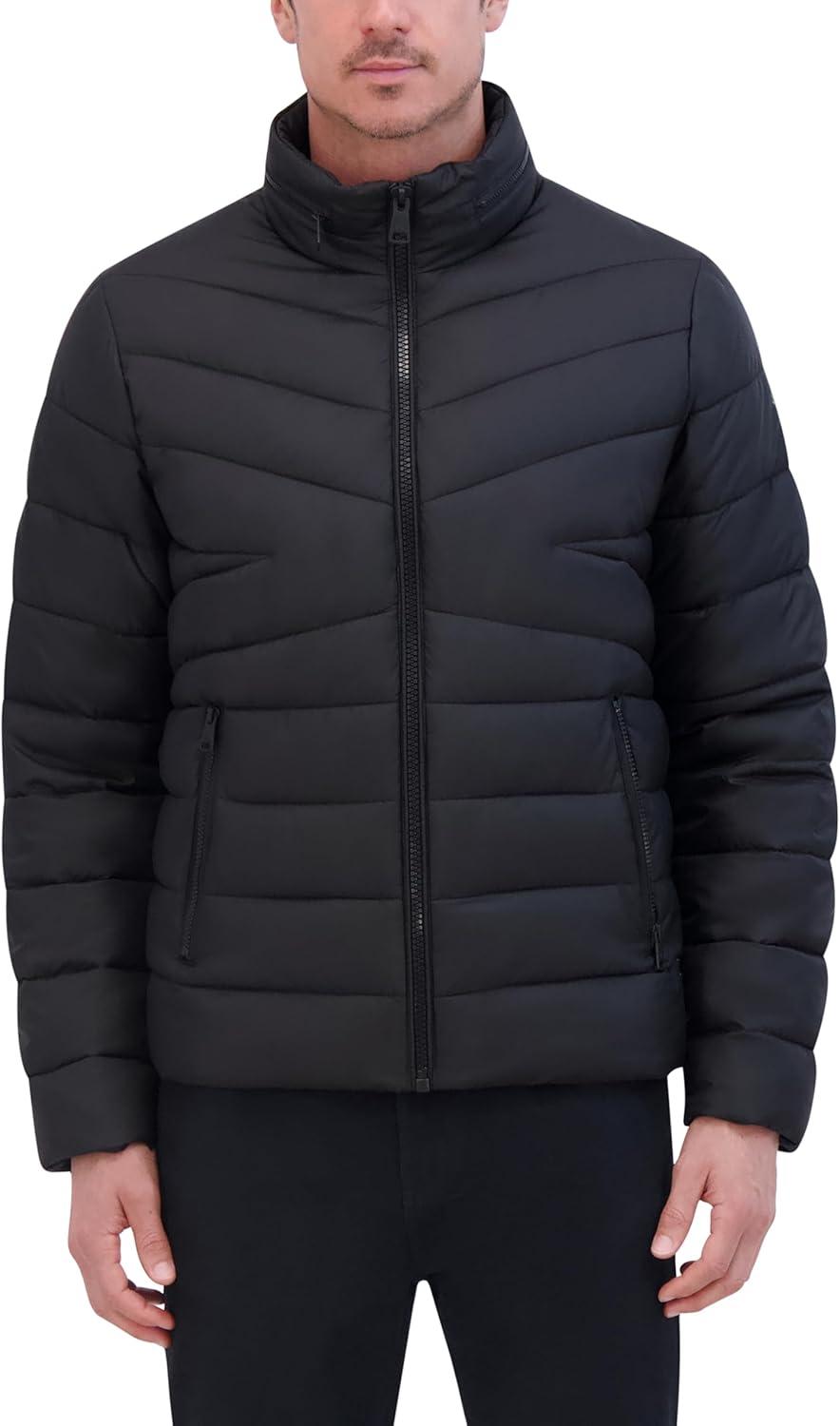 This Kenneth Cole Men's Outerwear Coat is a CF Zip Mixed Quilted Packable Puffer w Contrast Zipper