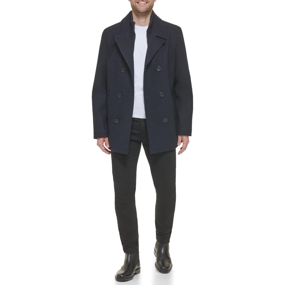Kenneth Cole mens Men’s Wool Top Coat(Pea Coat Navy)