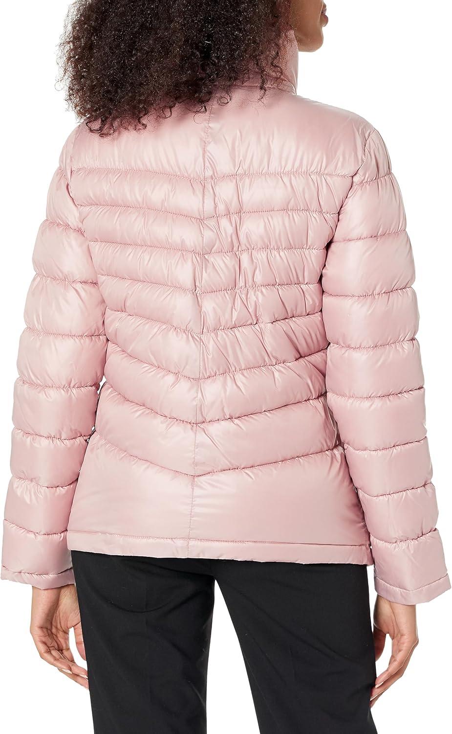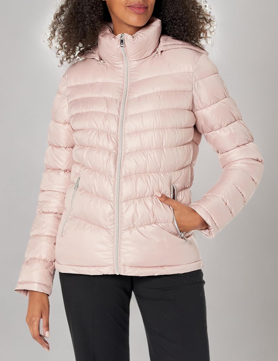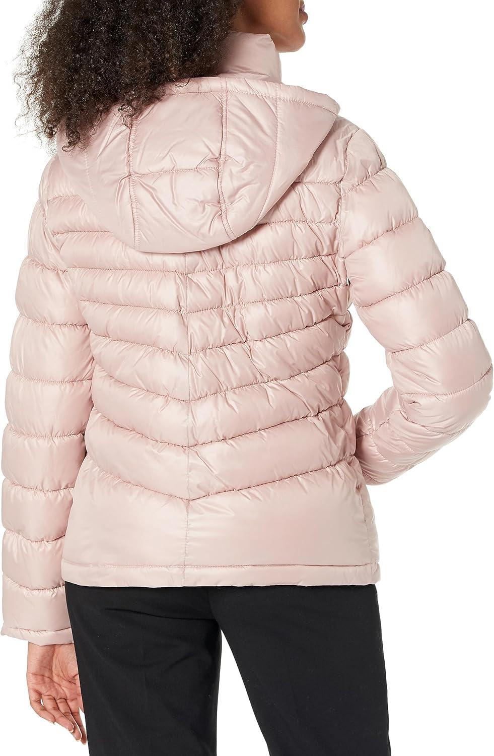 Kenneth Cole womens Solid Hooded Puffer Jacket(Packable Light Ewn)
