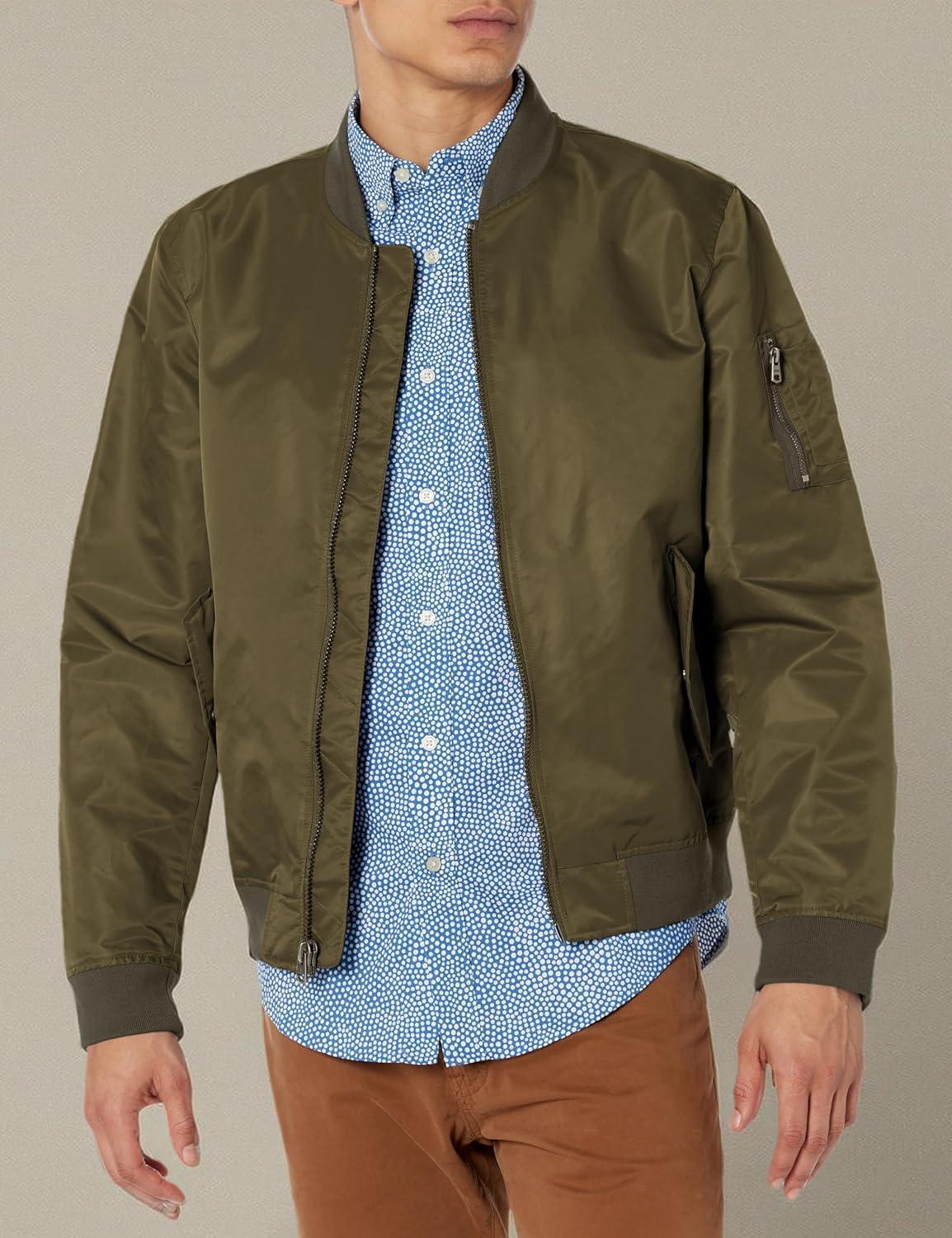 Unfilled ma-1 flight bomber jacket with front zipper closure