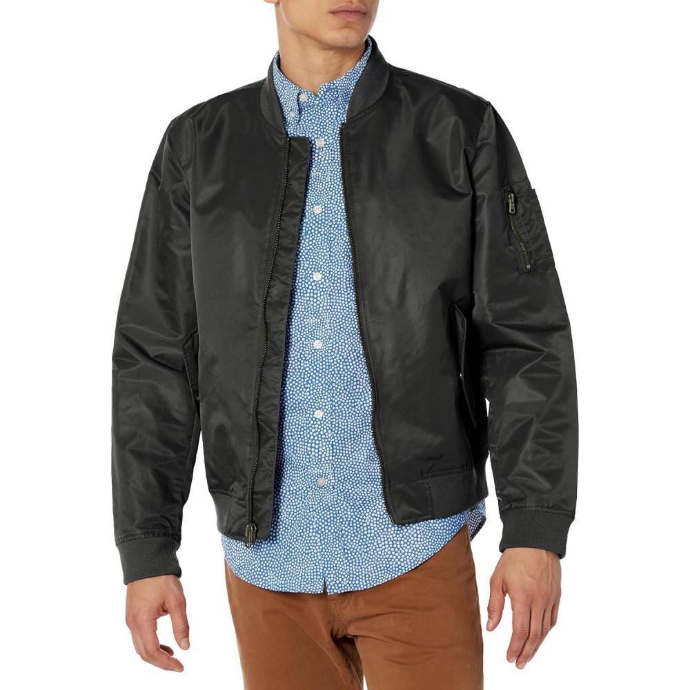 Unfilled ma-1 flight bomber jacket with front zipper closure