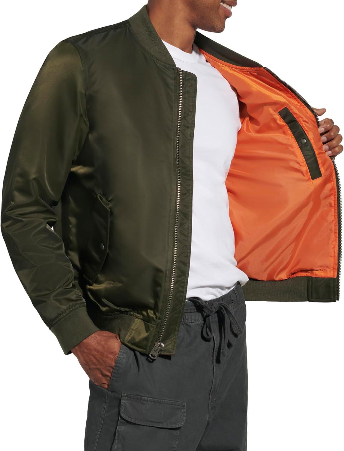Unfilled ma-1 flight bomber jacket with front zipper closure
