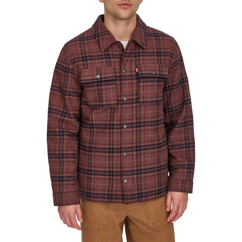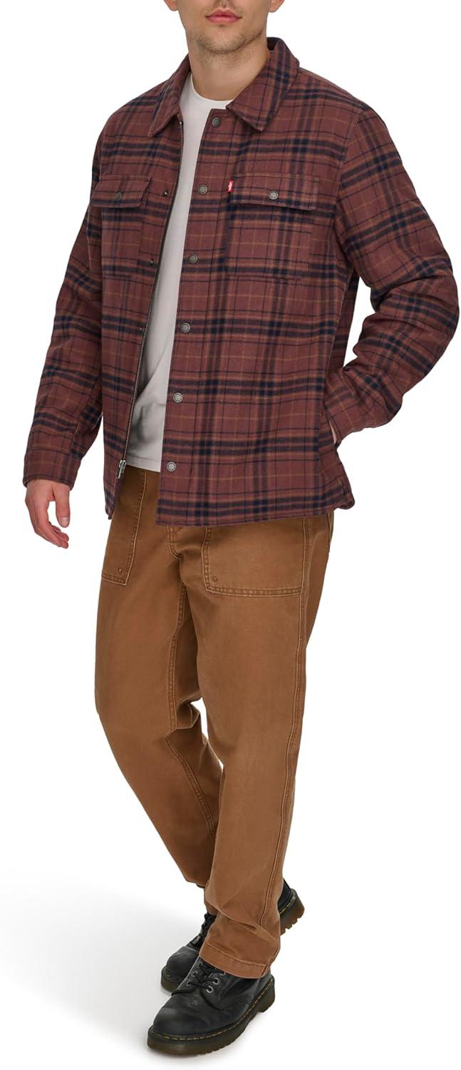 Stay warm and stylish with this Levi's Men's Cotton Plaid Shirt Jacket, designed for versatile layering in any season. The quilted lining and light fill provide just the right amount of warmth for cool fall nights, while the soft and durable cotton plaid fabric ensures all-day comfort. Functional features like the dual zipper and button-front closure offer flexibility, and the two upper chest flap pockets and lower welt pockets provide convenient storage. Adjustable snap cuffs add an extra touch of customization. Crafted with Levi's signature high-quality materials, this classic shirt jacket is complete with the iconic Levi's red tab on the wearer's left chest pocket. The model is 6'1″ and wears a size medium, providing a helpful sizing reference.