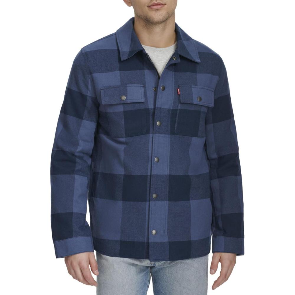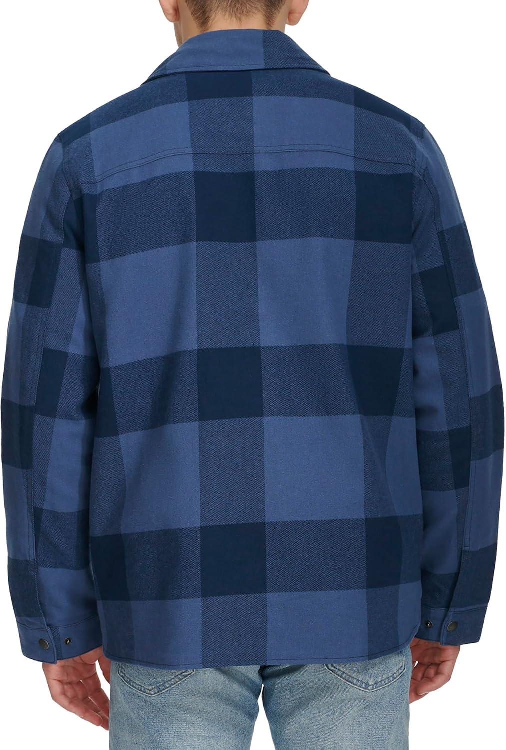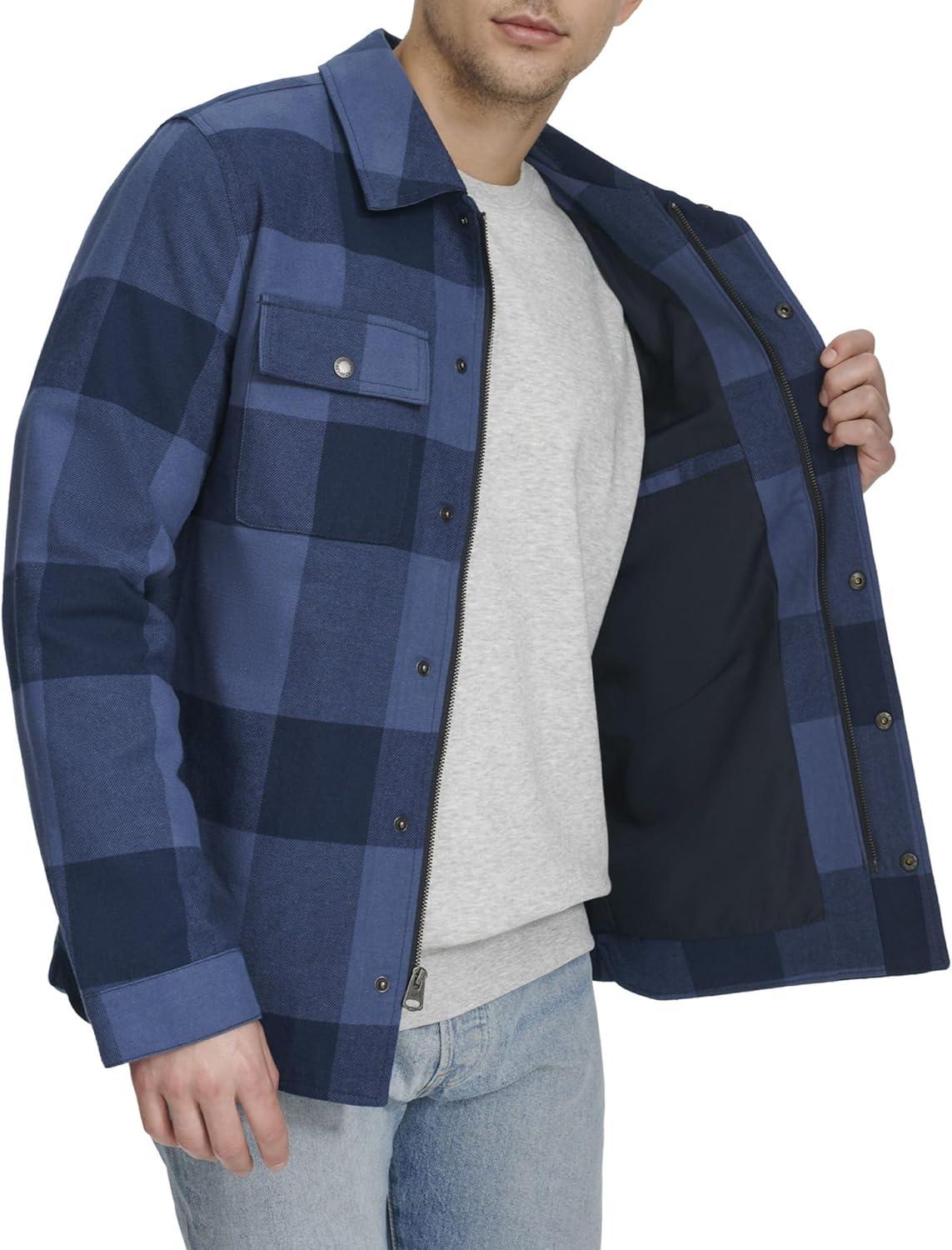 Stay warm and stylish with this Levi's Men's Cotton Plaid Shirt Jacket, designed for versatile layering in any season. The quilted lining and light fill provide just the right amount of warmth for cool fall nights, while the soft and durable cotton plaid fabric ensures all-day comfort. Functional features like the dual zipper and button-front closure offer flexibility, and the two upper chest flap pockets and lower welt pockets provide convenient storage. Adjustable snap cuffs add an extra touch of customization. Crafted with Levi's signature high-quality materials, this classic shirt jacket is complete with the iconic Levi's red tab on the wearer's left chest pocket. The model is 6'1″ and wears a size medium, providing a helpful sizing reference.