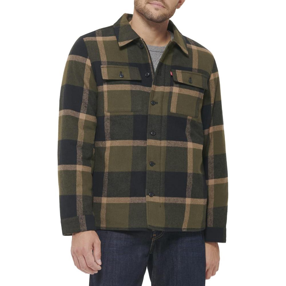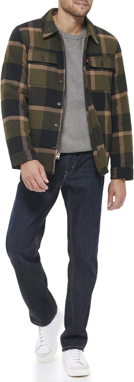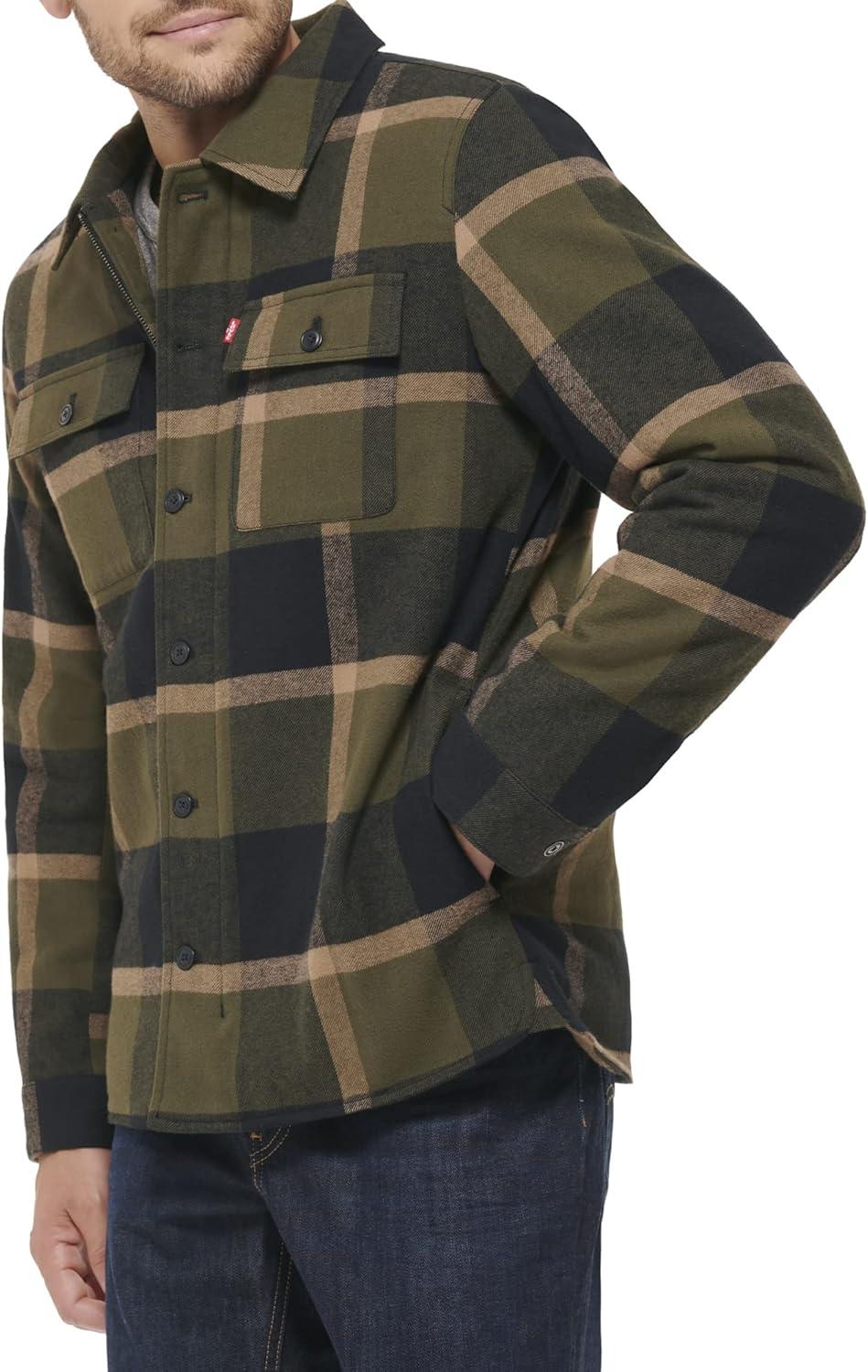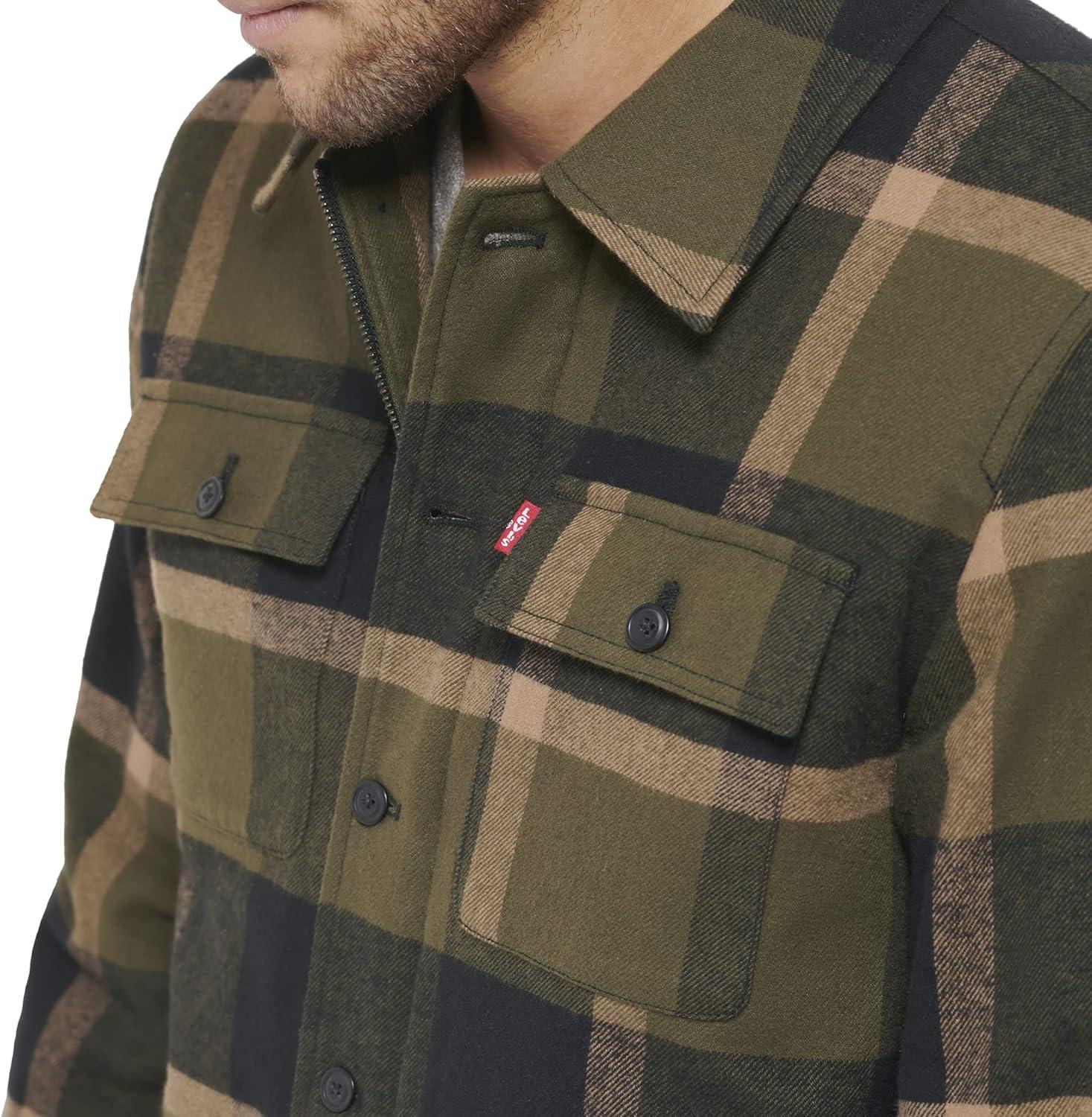 Levi’s mens Classic Plaid Shirt Jacket(Olive/Black Plaid)