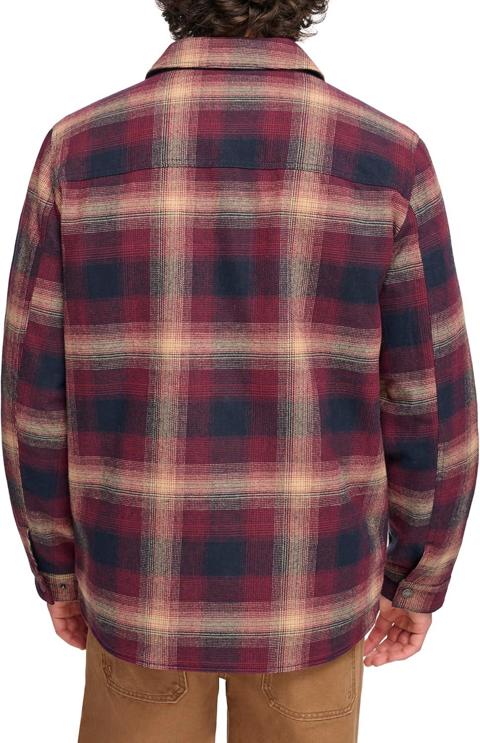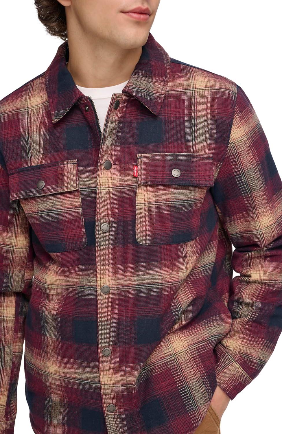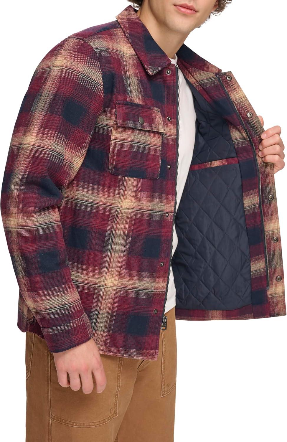 Stay warm and stylish with this Levi's Men's Cotton Plaid Shirt Jacket, designed for versatile layering in any season. The quilted lining and light fill provide just the right amount of warmth for cool fall nights, while the soft and durable cotton plaid fabric ensures all-day comfort. Functional features like the dual zipper and button-front closure offer flexibility, and the two upper chest flap pockets and lower welt pockets provide convenient storage. Adjustable snap cuffs add an extra touch of customization. Crafted with Levi's signature high-quality materials, this classic shirt jacket is complete with the iconic Levi's red tab on the wearer's left chest pocket. The model is 6'1″ and wears a size medium, providing a helpful sizing reference.