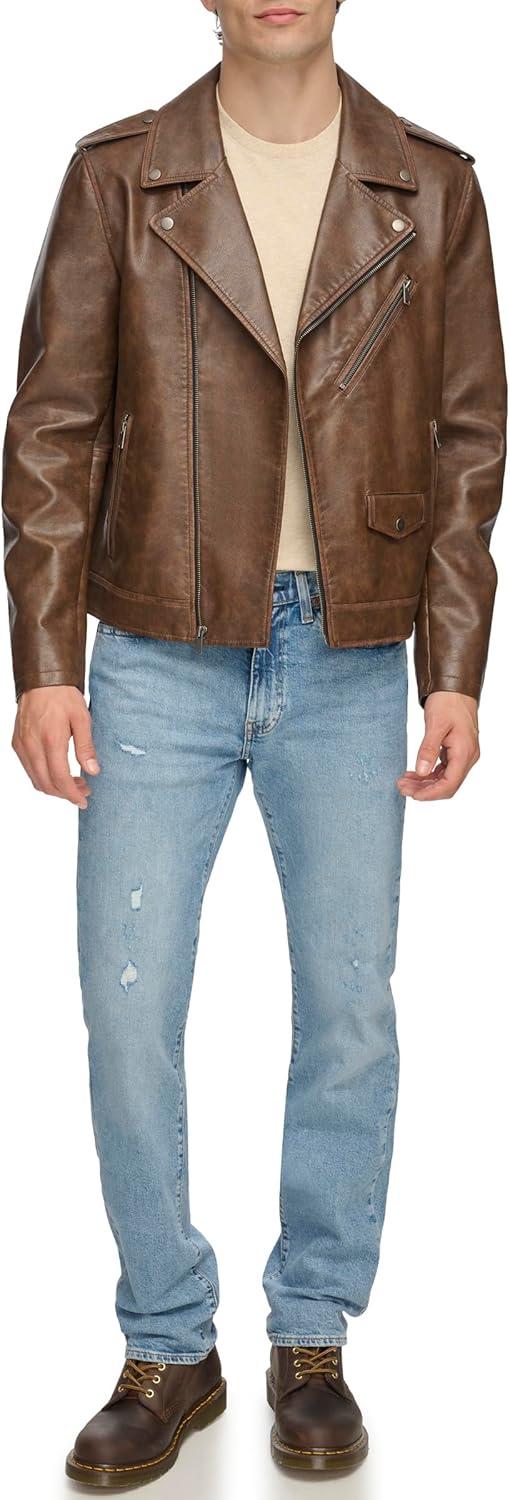 Levi’s Men’s Faux Leather Motorcycle Jacket(Saddle)
