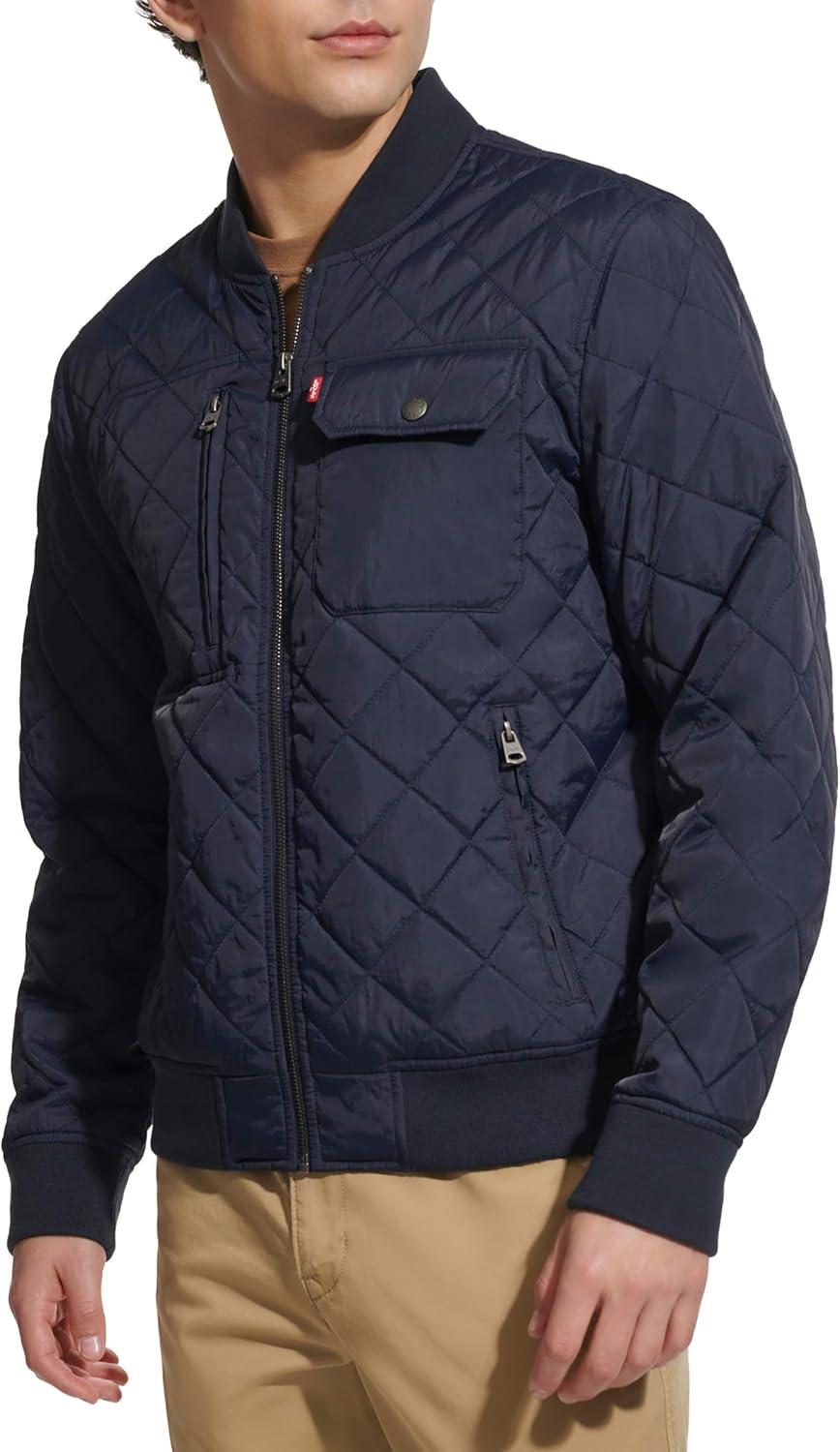 Levi’s mens Levi’s Men’s Diamond Quilted Bomber Jacket(Navy Dry Touch Nylon)