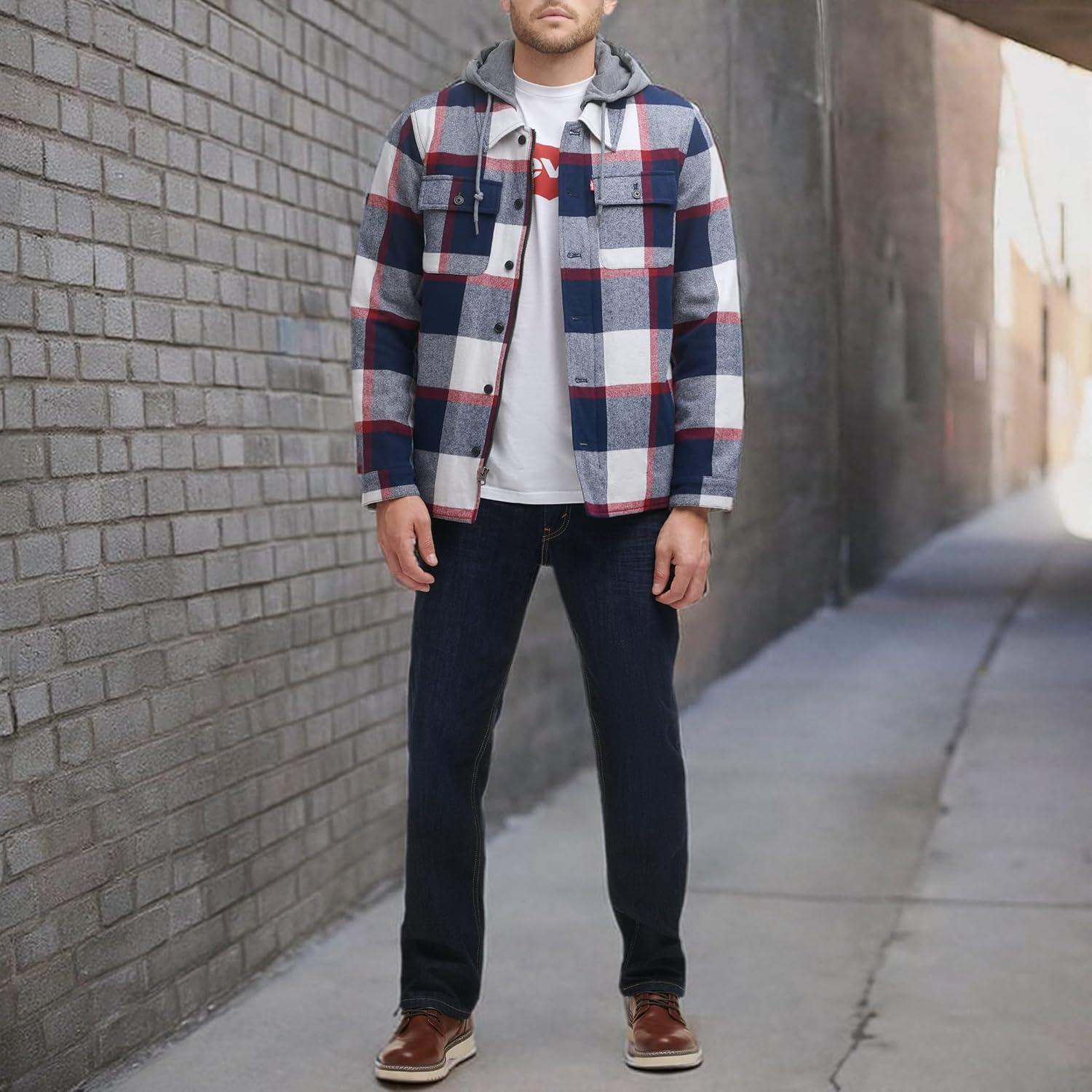 Levi’s Men’s Plaid Sherpa Lined Hooded Shirt Jacket (Regular & Big & Tall Sizes)(Hooded Skater Plaid)