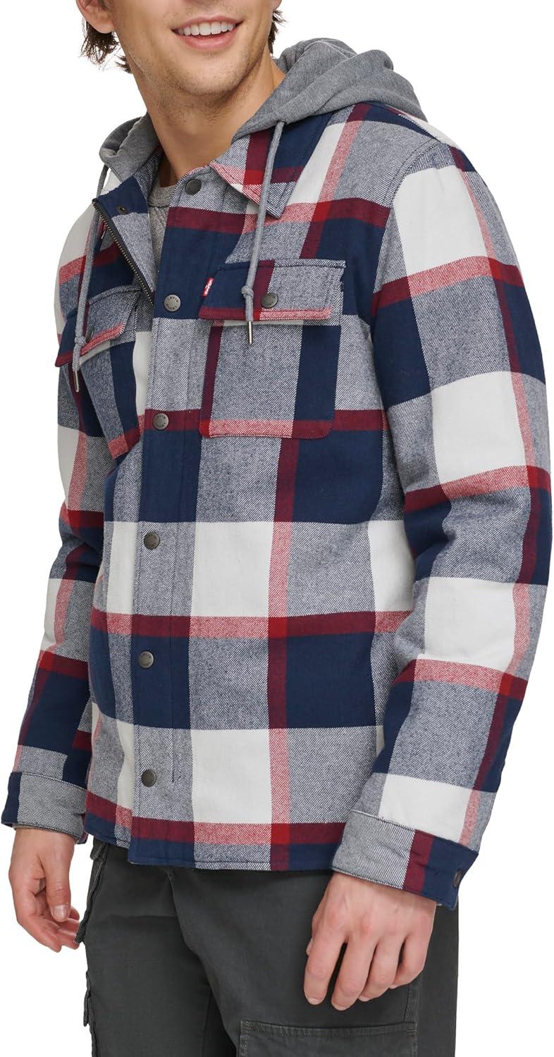 Levi's Men's Plaid Sherpa Lined Hooded Shirt Jacket (Regular & Big & Tall Sizes)(Navy/Red Skater Plaid)