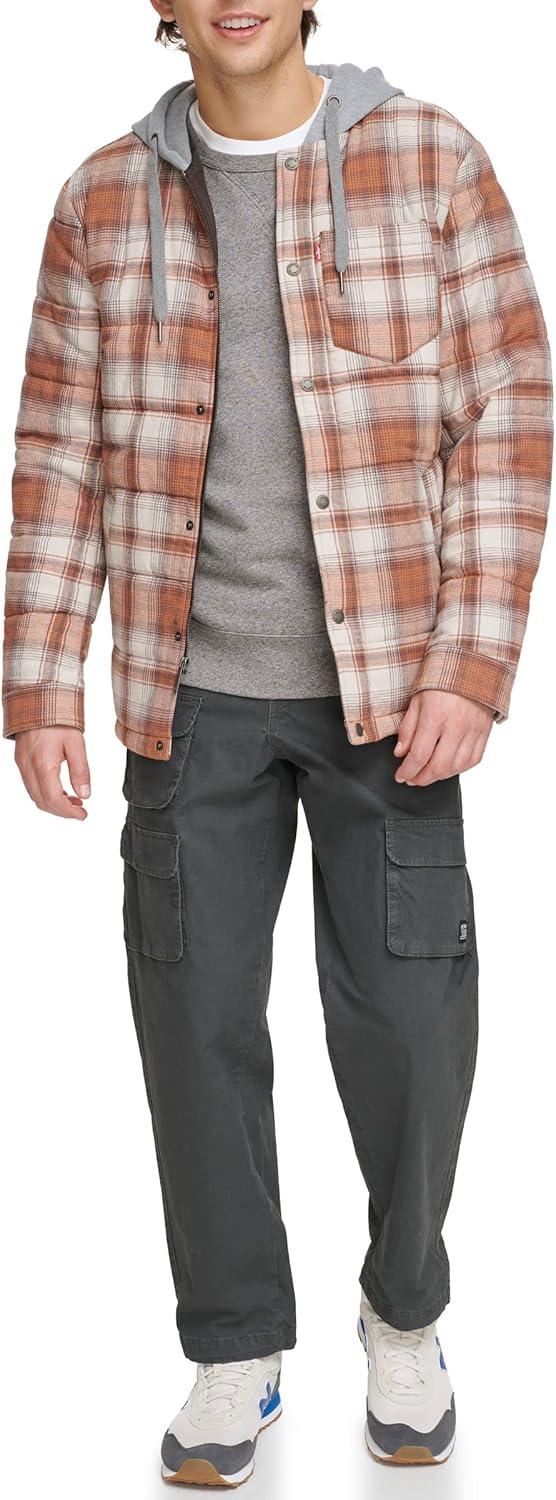 Levi’s Men’s Plaid Sherpa Lined Hooded Shirt Jacket (Regular & Big & Tall Sizes)(Orange Ombre)