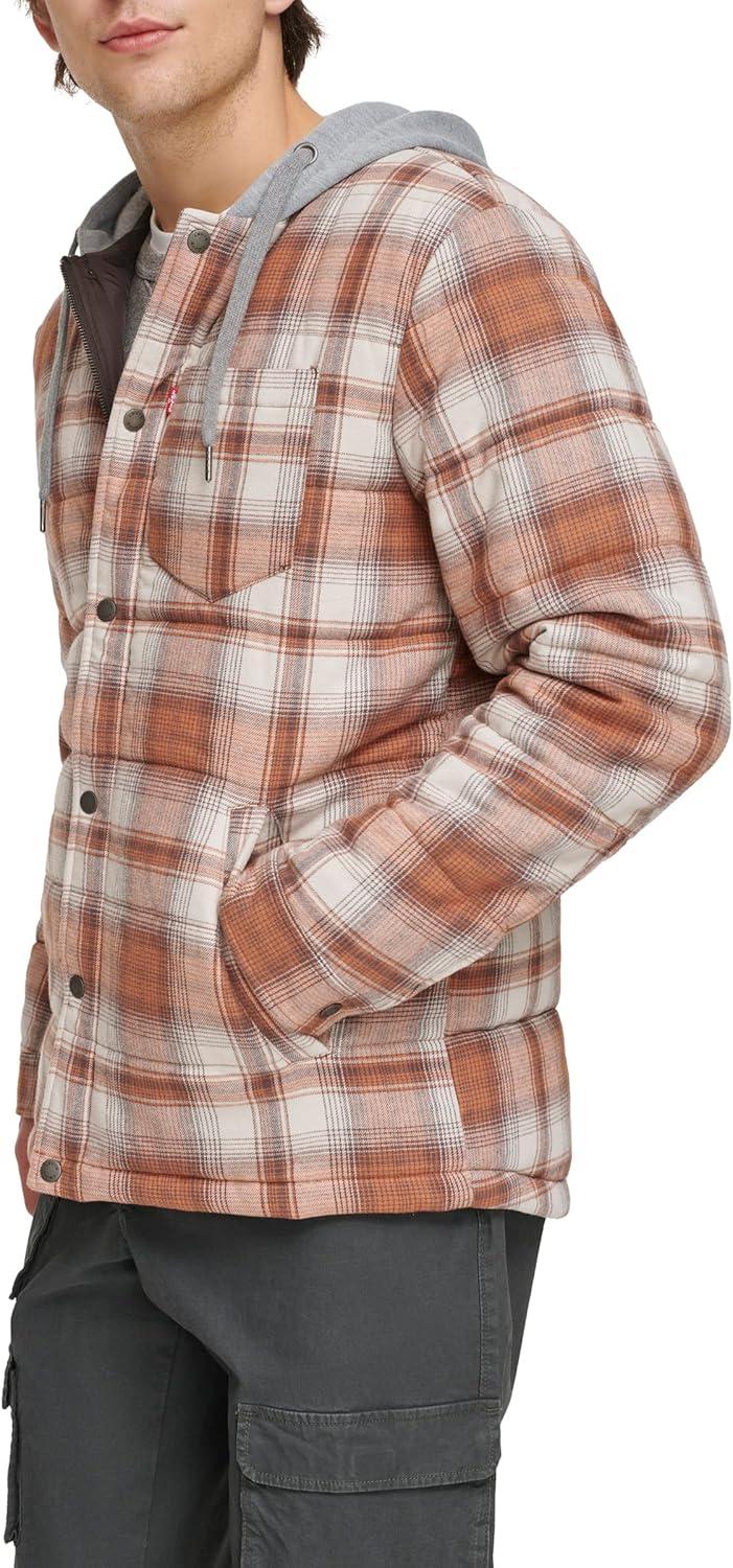 Levi's Men's Plaid Sherpa Lined Hooded Shirt Jacket (Regular & Big & Tall Sizes)(Orange Ombre)