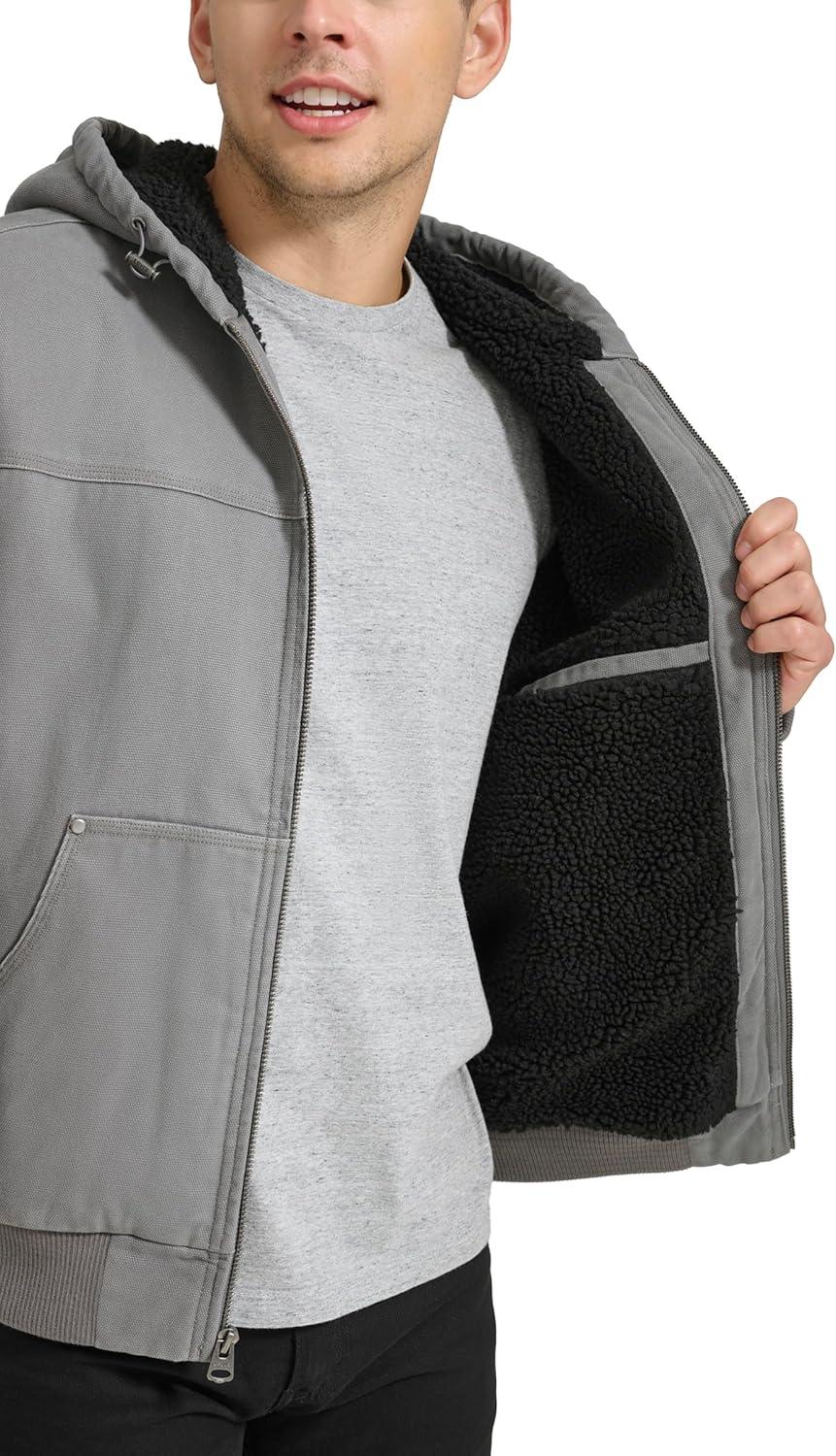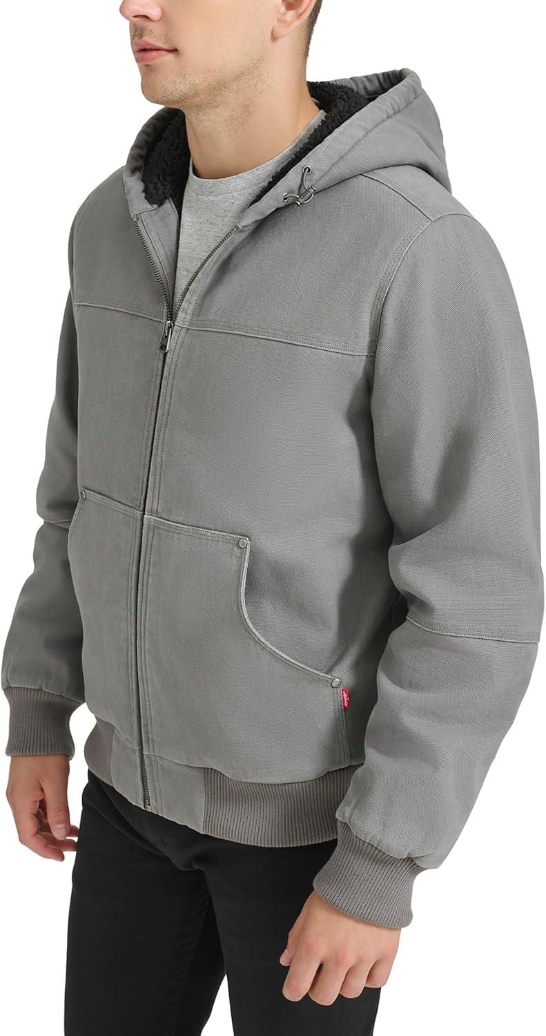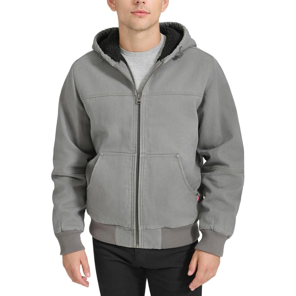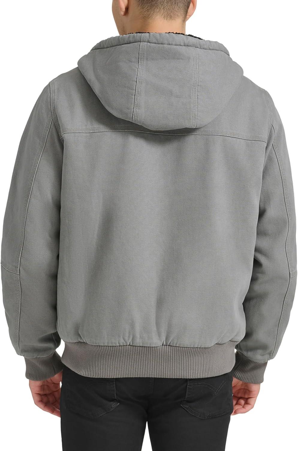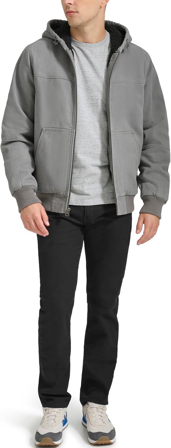 Levi’s Men’s Workwear Cotton Canvas Hooded Bomber Jacket (Regular & Big & Tall Sizes)(Grey/Sherpa Lined)