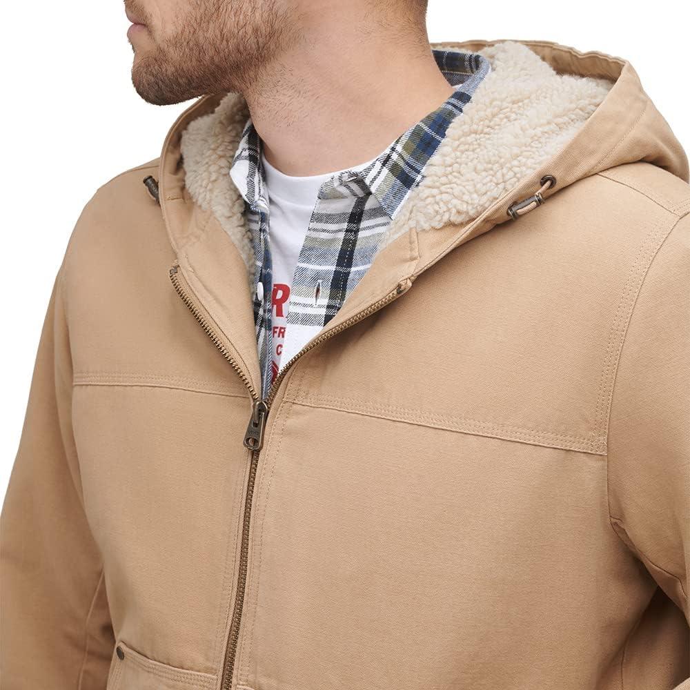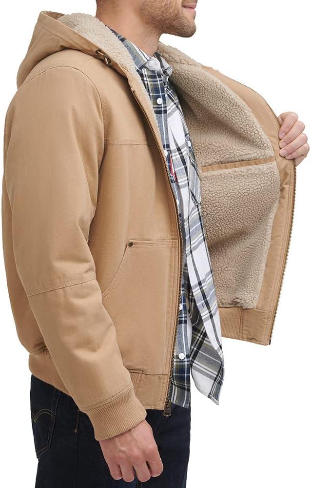 Levi’s Men’s Workwear Cotton Canvas Hooded Bomber Jacket (Regular & Big & Tall Sizes)(Olive/Sherpa Lined)