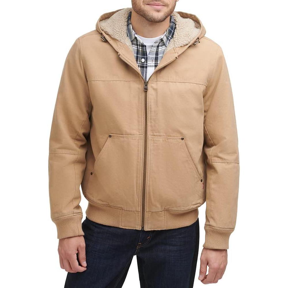 Levi's Men's Workwear Cotton Canvas Hooded Bomber Jacket (Regular & Big & Tall Sizes)(Light Tan)