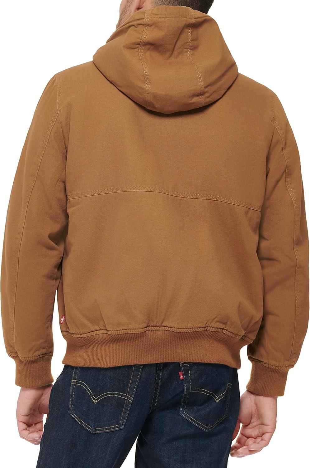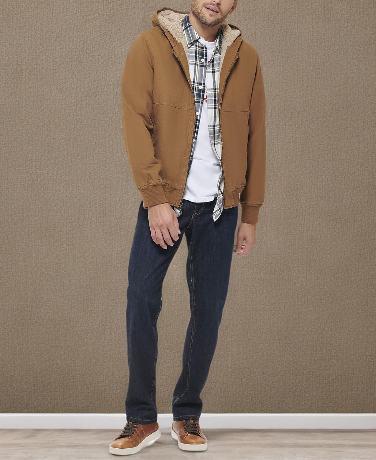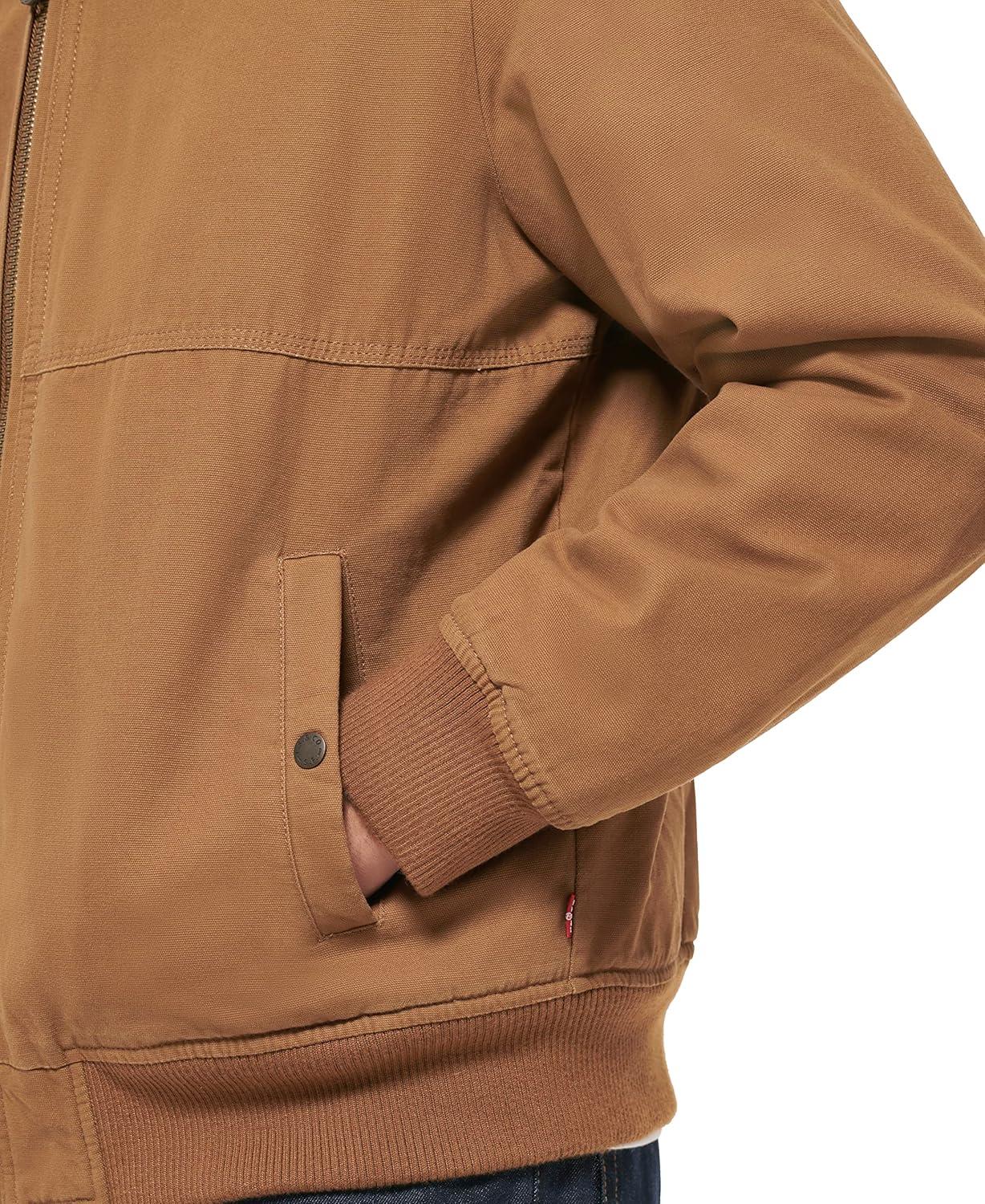 Levi's Men's Workwear Cotton Canvas Hooded Bomber Jacket (Regular & Big & Tall Sizes)(Worker Brown Welt Pockets Sherpa)