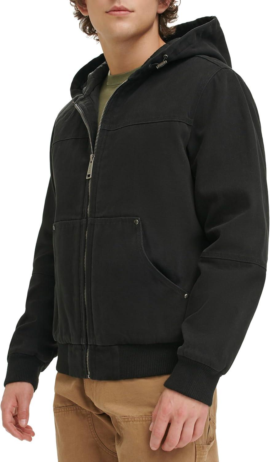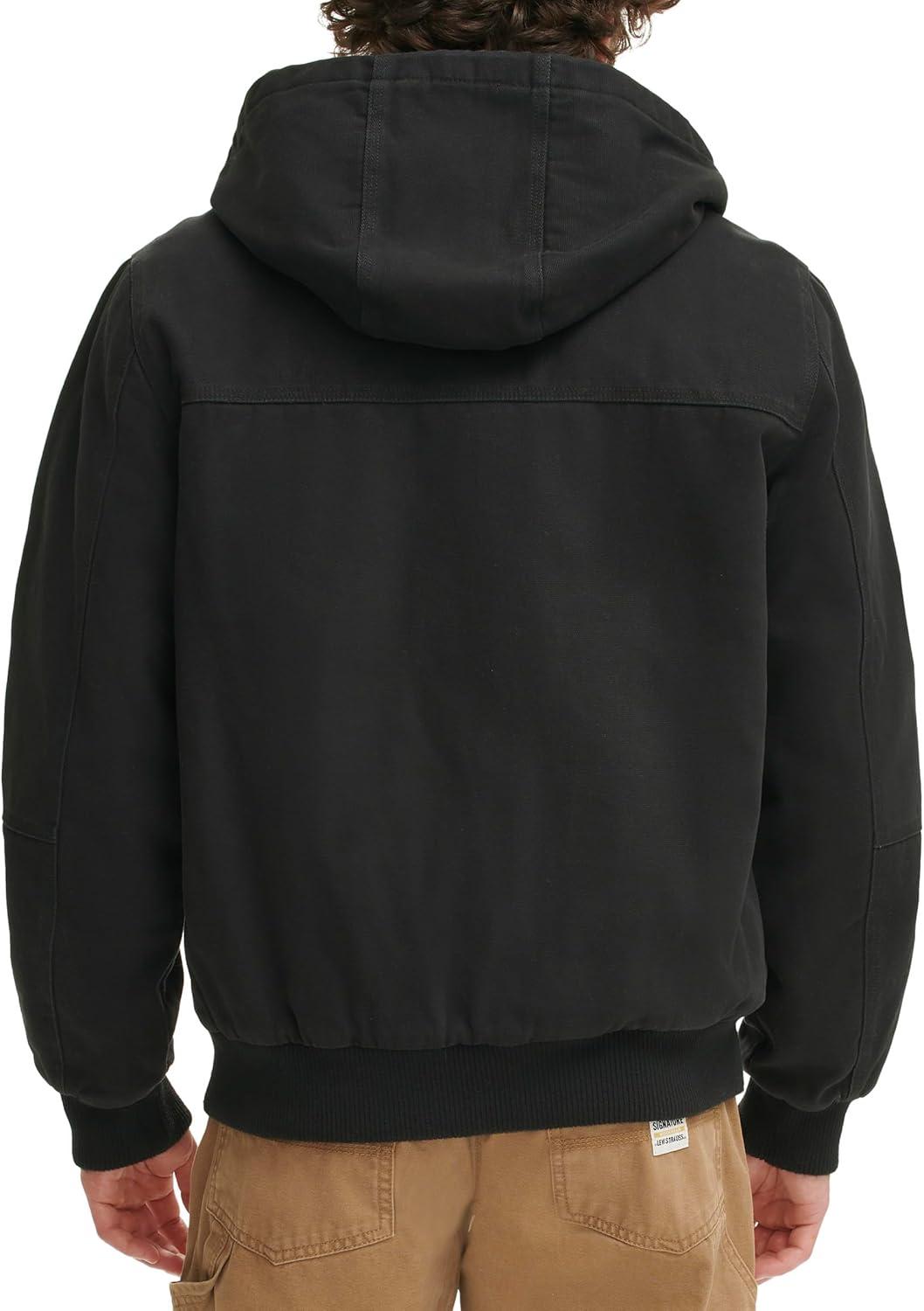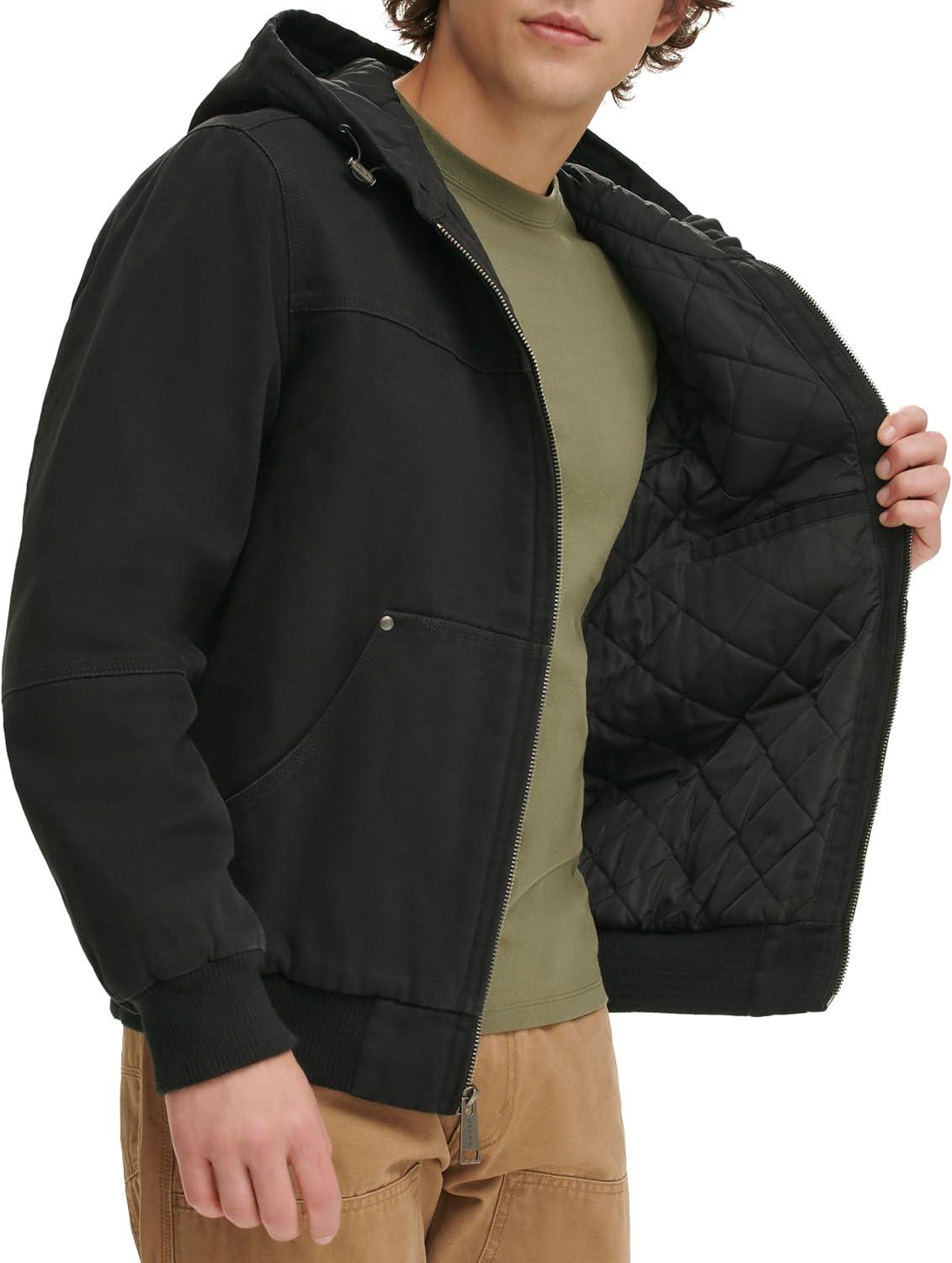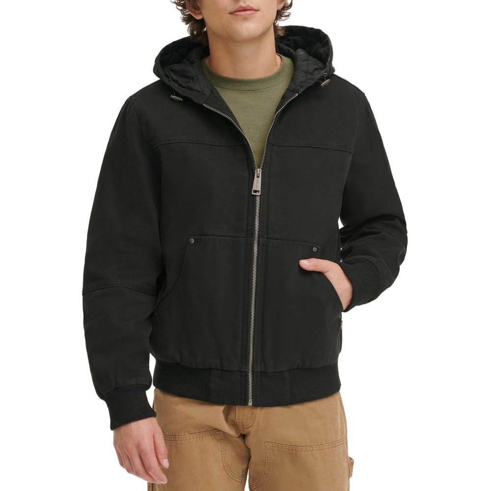 Levi’s Men’s Workwear Cotton Canvas Hoody Bomber Jacket (Regular & Big & Tall Sizes)(Black Quilted Lining)