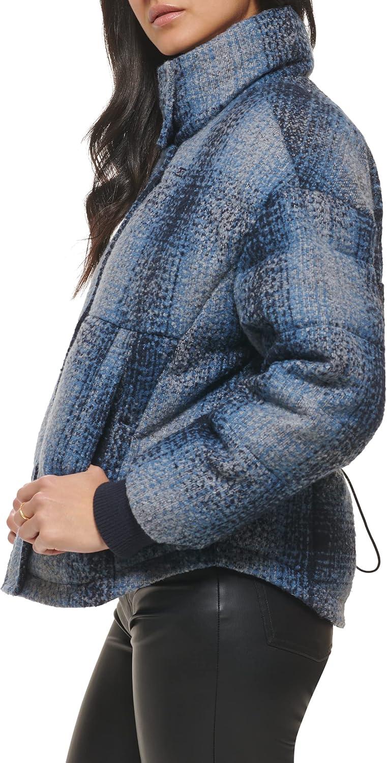 Levi's womens Cinch Waist Puffer Jacket(Blue Ombre Wool Plaid)