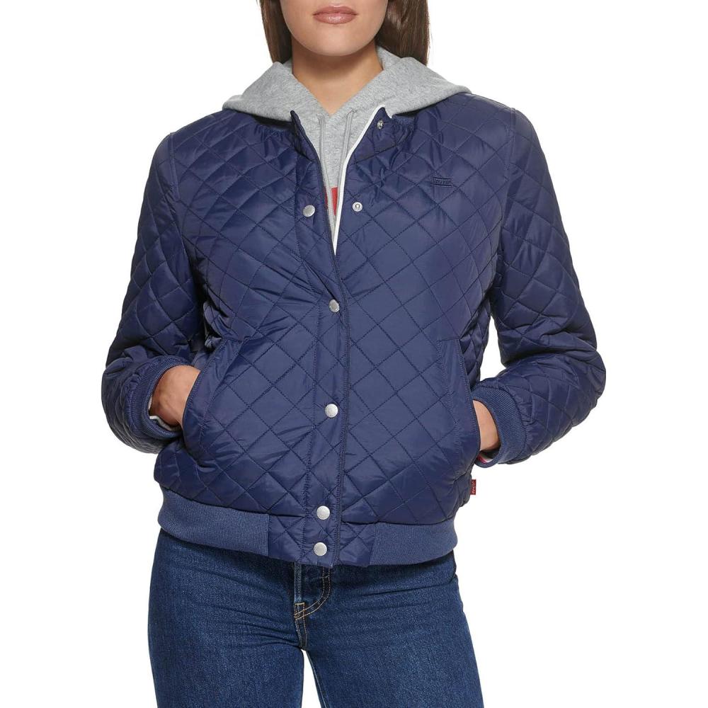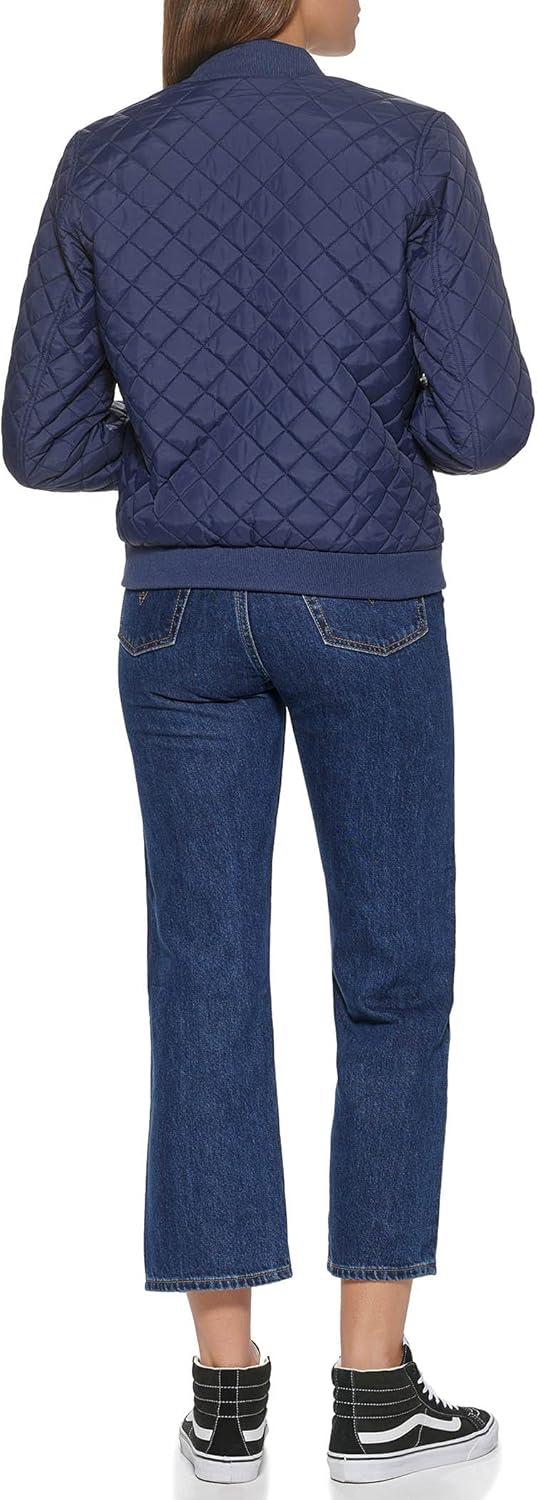 Levi's Women's Diamond Quilted Bomber Jacket With Front Pockets - Regular & Plus Sizes(Navy Sherpa Lined)