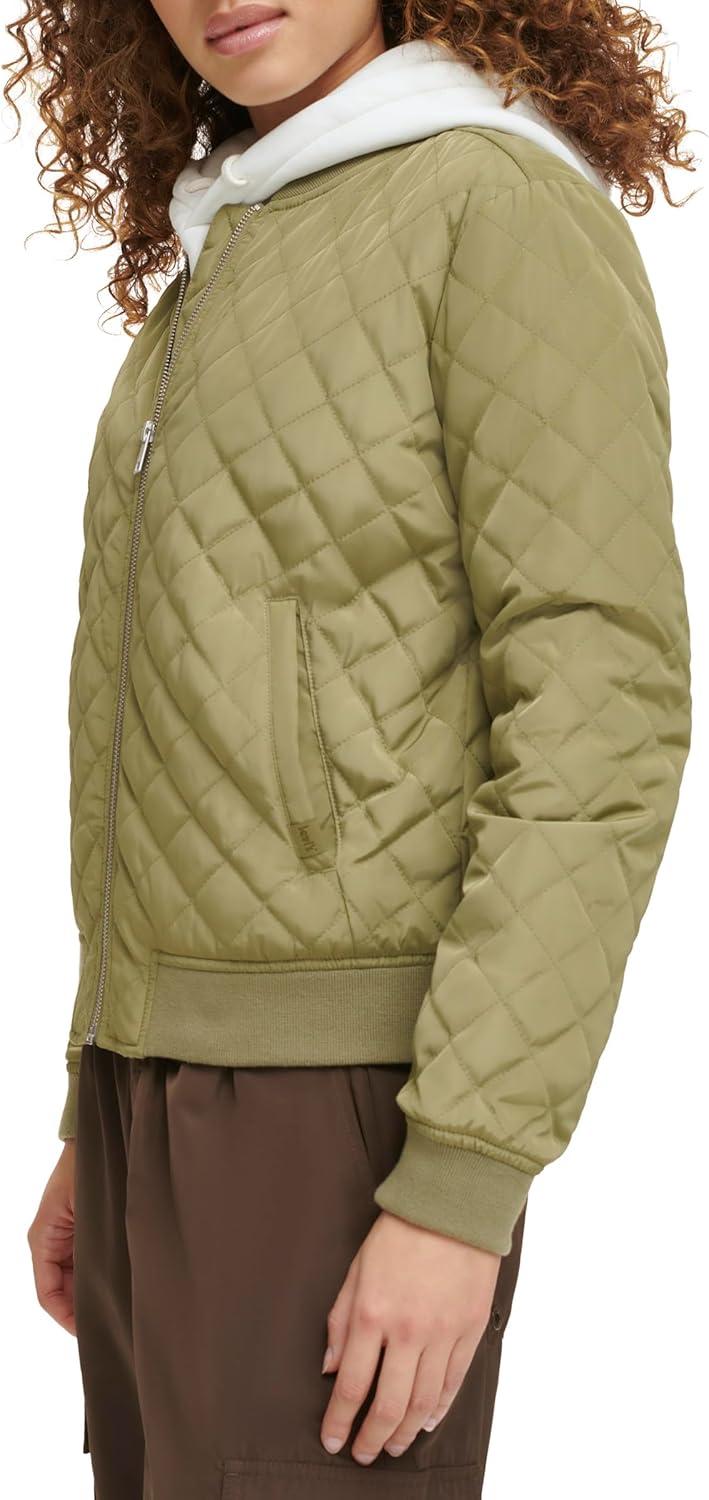 Levi’s Women’s Diamond Quilted Bomber Jacket With Front Pockets – Regular & Plus Sizes(Olive Tree)