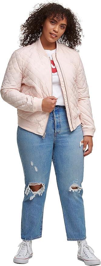 Levi’s Women’s Diamond Quilted Bomber Jacket With Front Pockets – Regular & Plus Sizes(Peach Blossom Blush)