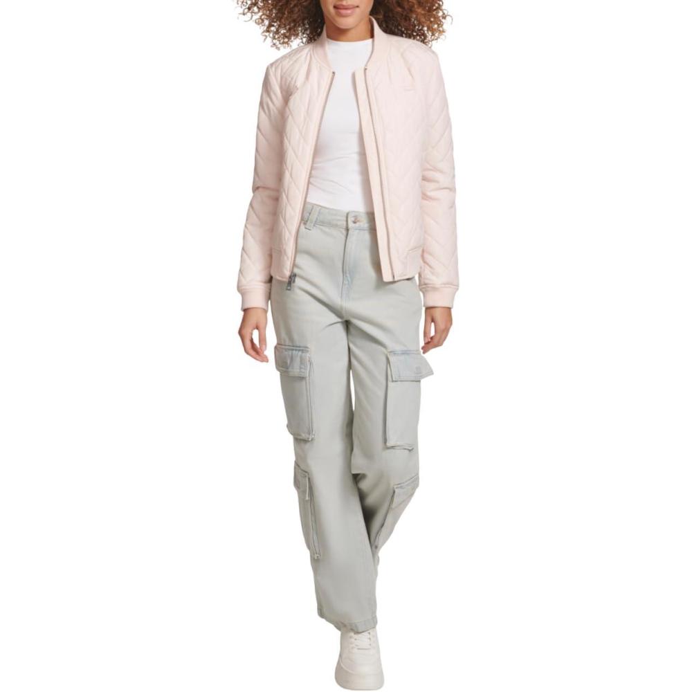 imageLevis Womens Diamond Quilted Bomber Jacket With Front Pockets  Regular ampamp Plus SizesPeach Blossom Blush